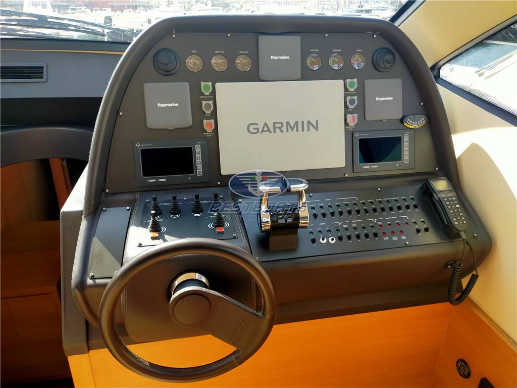 angolo di Barra, antenna radar, bussola, contamiglia, comandi a leva motori elettronico, contametri catena, ecoscandaglio GPS, pilota automatico, plotter con antenna GPS, radar, radio VHF, GPS SIMRAD, comandi elica di poppa e prua, trim e flaps