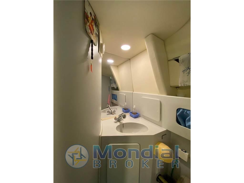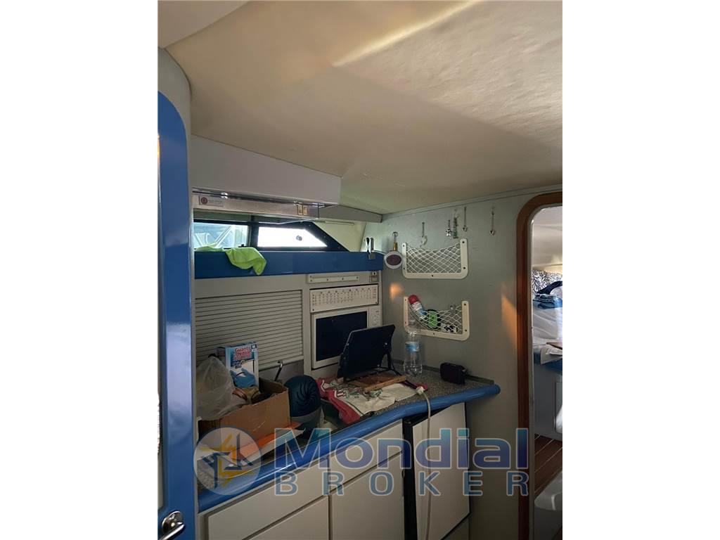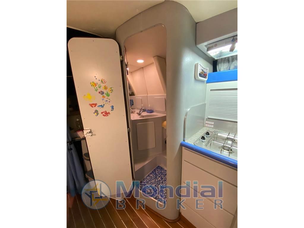 Forno, frigo, cucina a 2 fuochi con chiusura gas. Gps satellitare con ecoscandaglio, allama collisione, allarme ancora. Pompa di sentina antomatica e