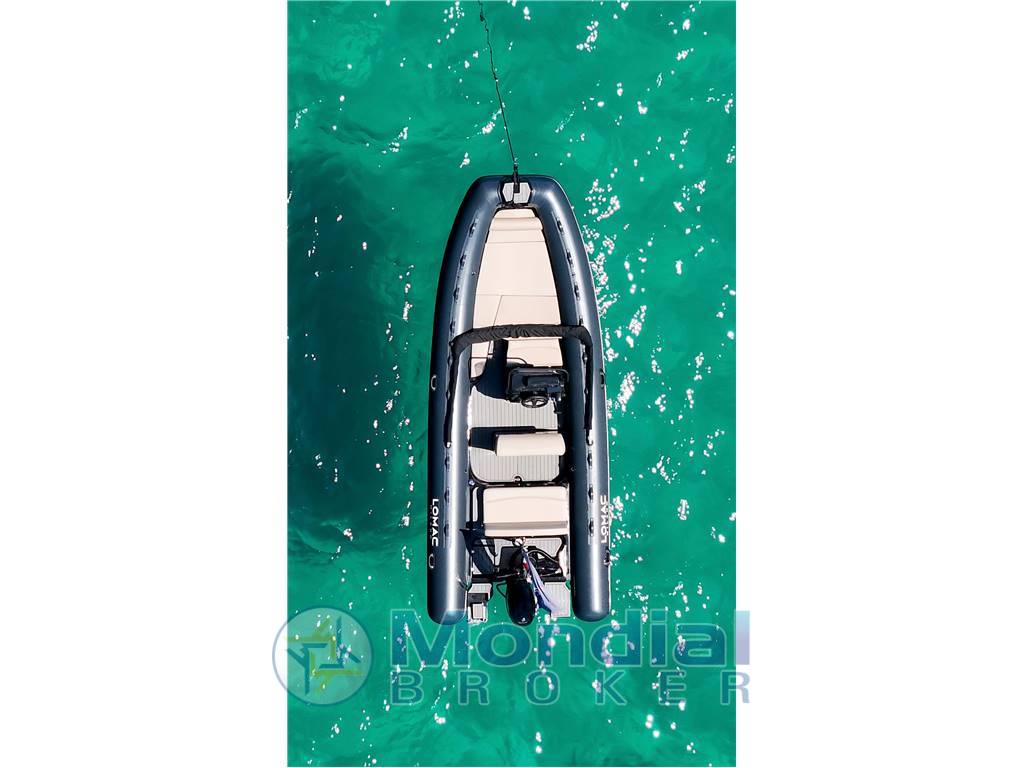 Battello pneumatico Lomac Milano, modello Turismo 600 (black - EYS edition), equipaggiato con motore fuoribordo Yamaha da 40 CV.