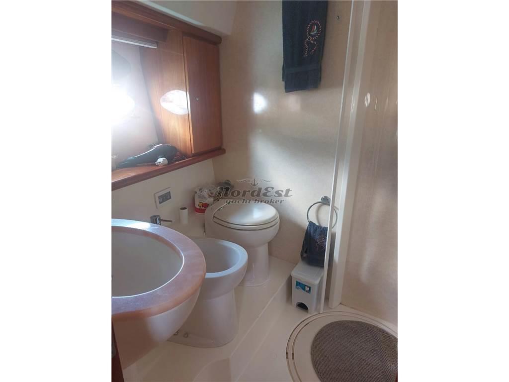 tre cabine in piano e due servizi con bidet e box doccia. Cabina marinaio con aria condizionata e wc separato.