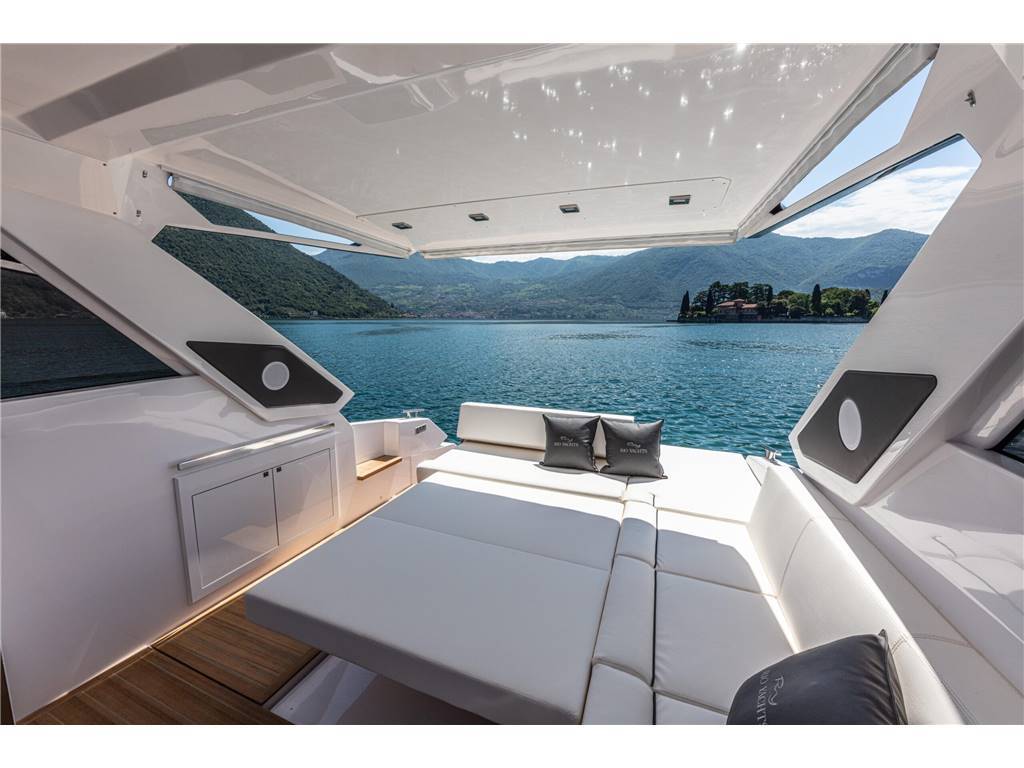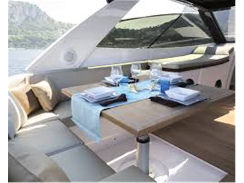 • Convertible Cockpit: The teak outdoor area is extremely versatile. An electric table can be lowered to seat level, transforming into a large sundeck or becoming an integral part of the L-shaped sofa. The area can comfortably accommodate up to 6–8 people.