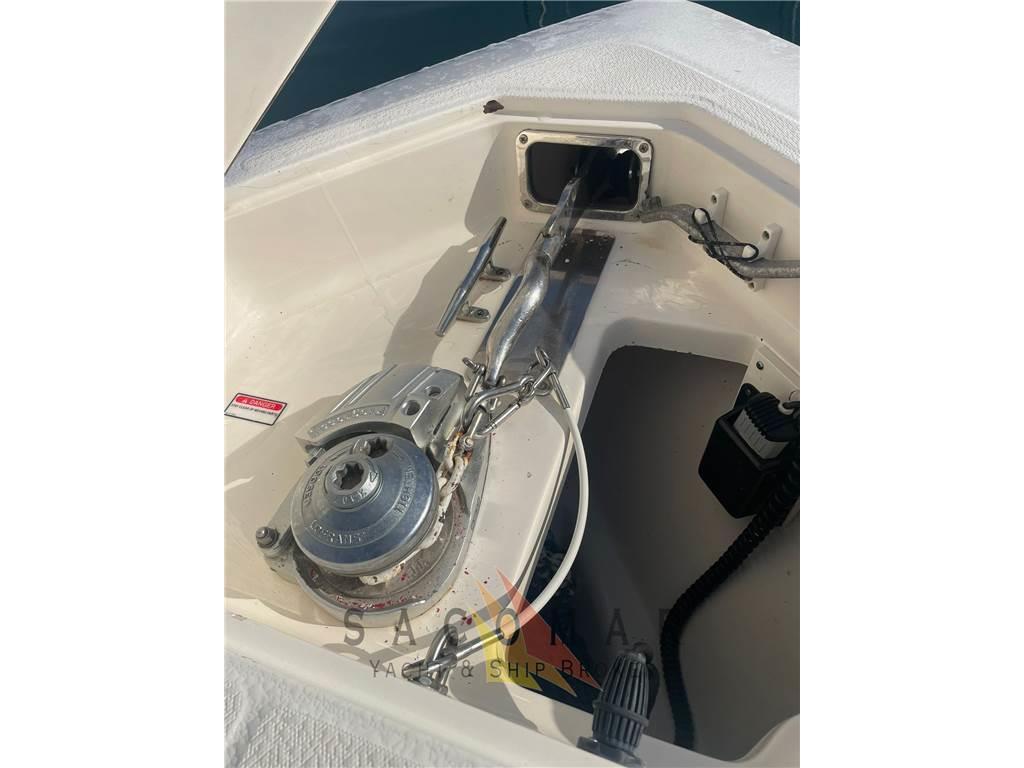 Allarme motore, Ancora, Autoclave, Batterie, Bussola, Caricabatterie, Colorazione speciale (giallo), Contamiglia, Doccia esterna, Ecoscandaglio, Flap elettrici (Lenco), Lavandino nel Pozzetto, Luci di cortesia, Plotter con antenna GPS (Raymarine E120), Pompa di sentina automatica, Pompa di sentina elettrica, Pompa di sentina manuale, Presa 220V banchina, Radio VHF, Salpa Ancore Elettrico, Scaletta da bagno, Sedile Copilota, Tromba, T-Top