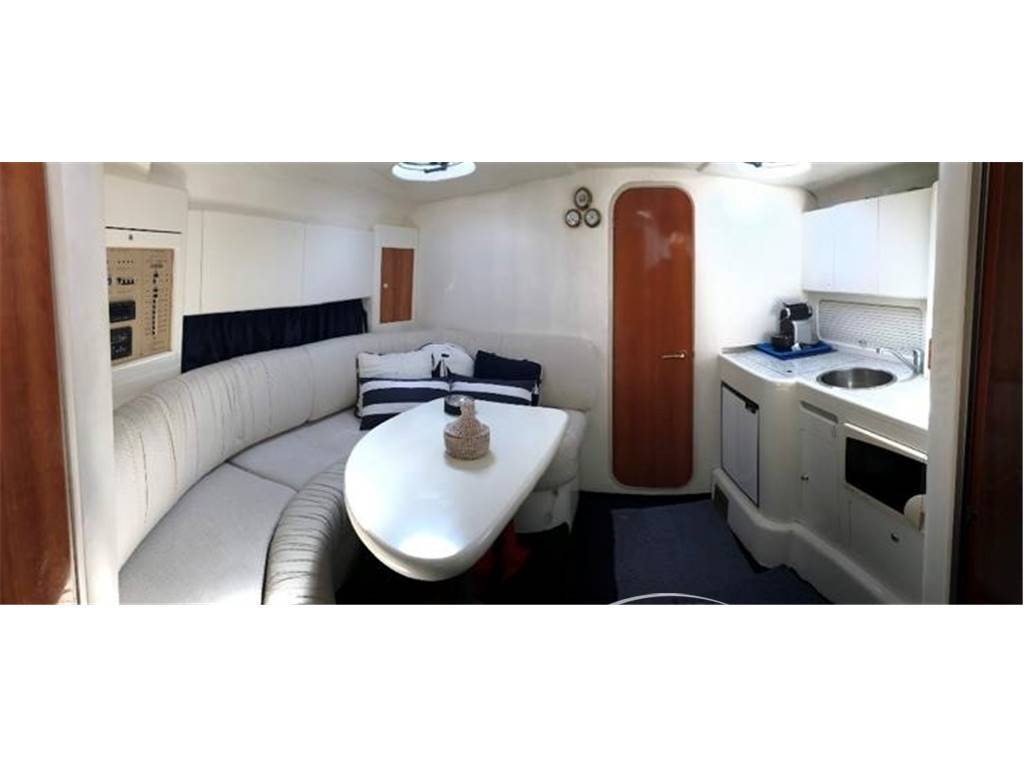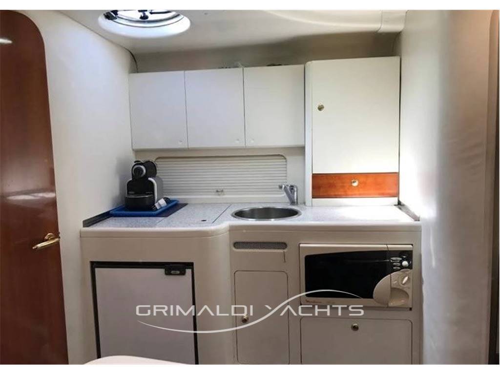 La cucina, situata nella zona dinette è particolarmente ricca per un 34 piedi. È dotata di forno a microonde, frigorifero ad ampio volume e cucina a tre fuochi.
