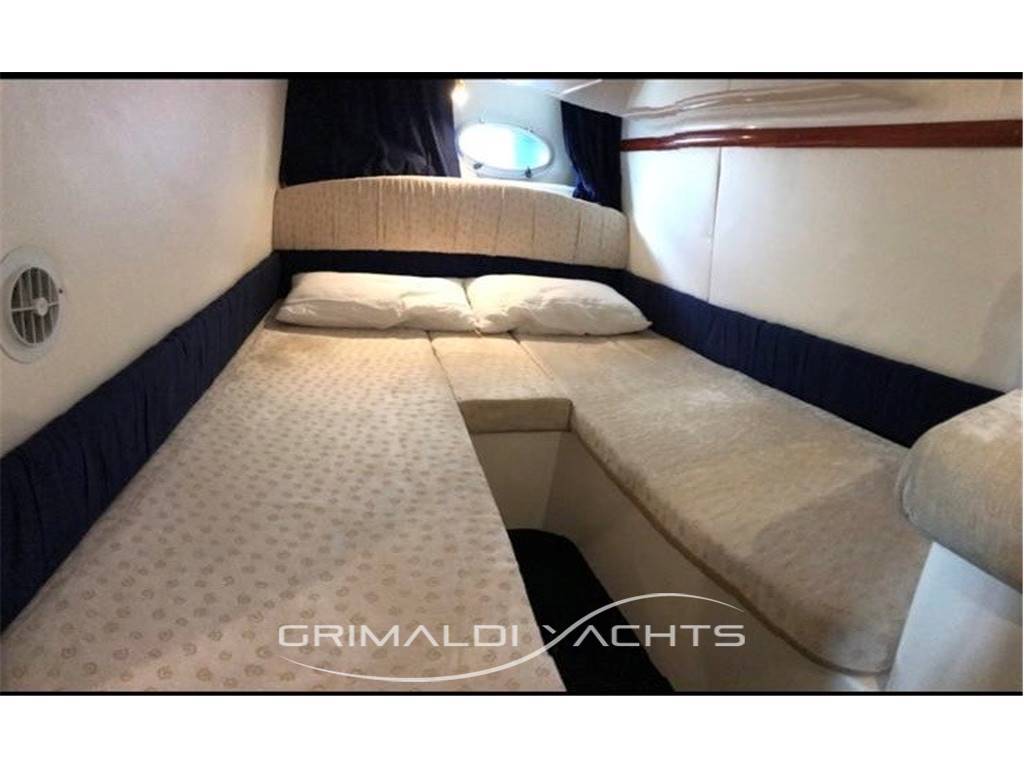 La barca dispone di due cabine, rifinite con materiali di qualità e dotate di ogni comfort necessario per crociere rilassanti di medio- lunga durata. Troviamo una cabina armatoriale situata a prua con letto centrale e comodi vani porta oggetti lungo le murate.