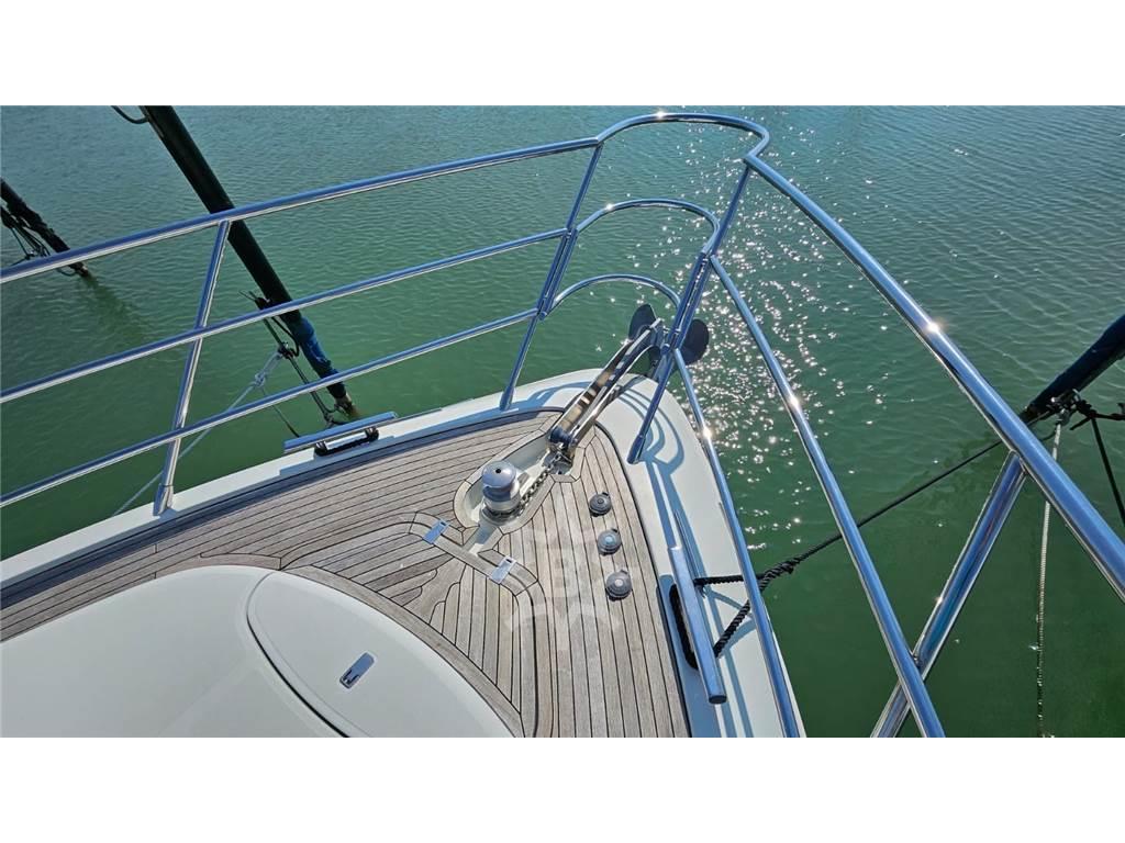 Autoclave, Bussola, Camminamenti laterali in teak, Caricabatterie, Colorazione speciale (scafo grigio metallizzato), Contametri catena, Contamiglia, Doccia esterna, Ecoscandaglio, Elica di poppa - stern thruster, Elica di prua - bow thruster, Faro orientabile, Flap idraulici, Garage per tender, 2 GPS (Raymarine C120), Hard top, Indicatori Flaps, Joystick (XENTA), Lavandino nel Pozzetto, Log, Luci di cortesia, Luci subacquee, Passerella (a scomaprsa), Piattaforma (abbattibile in teak), Pilota automatico, Pompa di Scarico del Serbatoio Acque Reflue, Pompa di sentina automatica, Pompa di sentina elettrica, Pompa di sentina manuale, Porta ingresso (scorrevole), Pozzetto Teak, Presa 220V banchina, Presa acqua banchina, Radar (24 Mg), Radio VHF, Salpa Ancore Elettrico, Scaletta da bagno, Sedile Copilota, Tavolo pozzetto (abbattibile per trasformazione in prendisole), 2 Winch tonneggio di poppa
