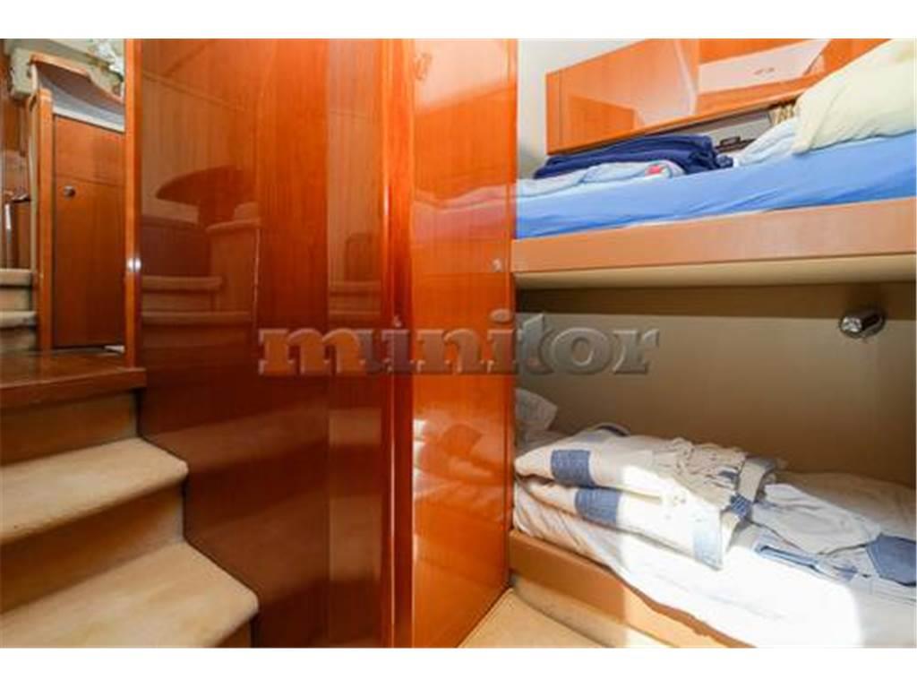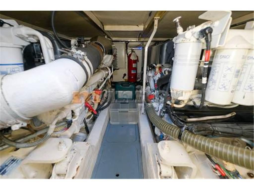Aria condizionata, Impianto audio, Pilota automatico, Piattaforma da bagno, Caricabatterie, Elica di prua, Doccia in pozzetto, Bussola, Cuscini di coperta, Ecoscandaglio, Comando gas El.salpa ancora, Batteria motore, Frigorifero supplementare, Parabordi, Copertura Flaybridge, Bimini FLYBRIDGE, Generatore, Plotter GPS, Serbatoio acque grigie, Riscaldamento, Impianto acqua calda, Passerella idraulica, Inverter 12/ 220 Volt, Radar, Frigorifero, Antenna satellitare, Batteria di servizio, Divani in pelle, Teak di poppa, Elica di poppa, Fornello, Scaletta bagno, Teak in pozzetto, Trim Tabs, VHF