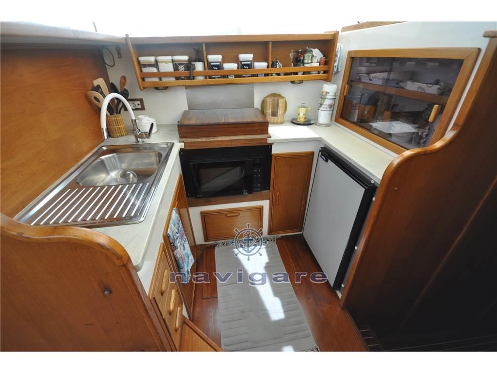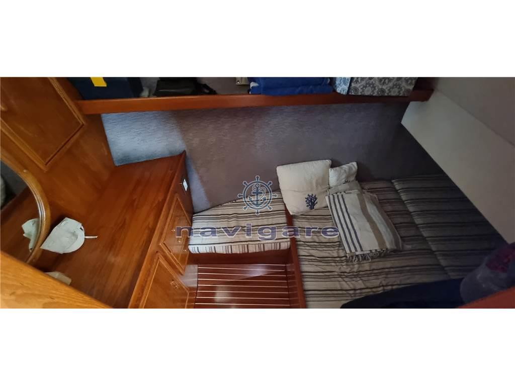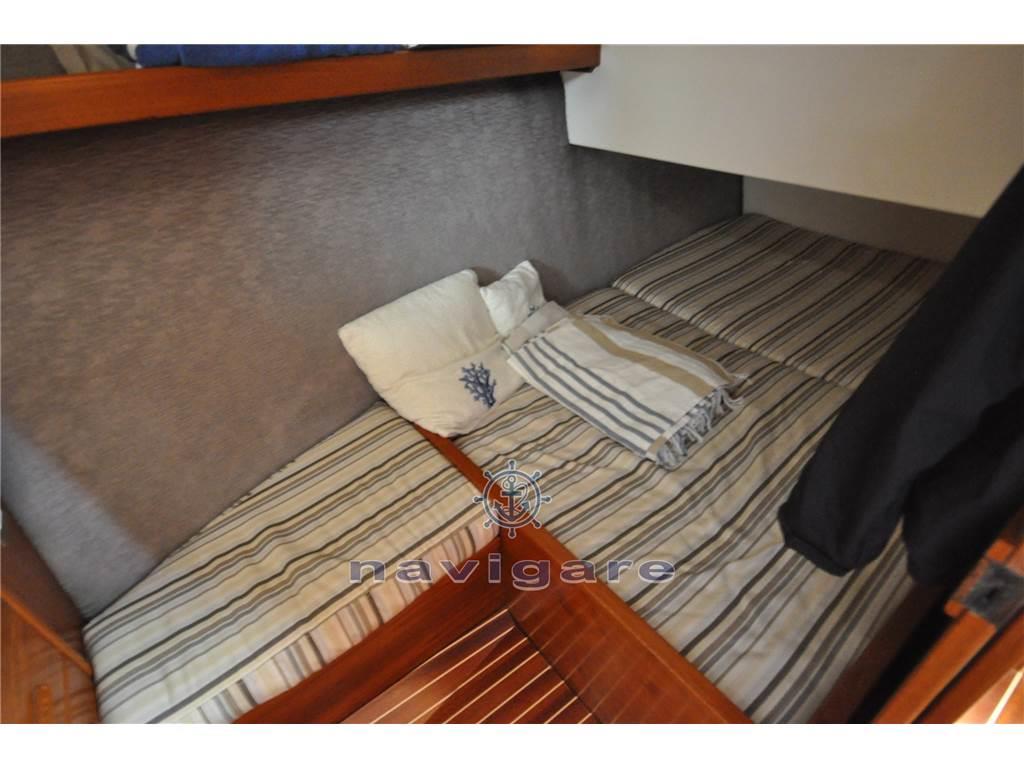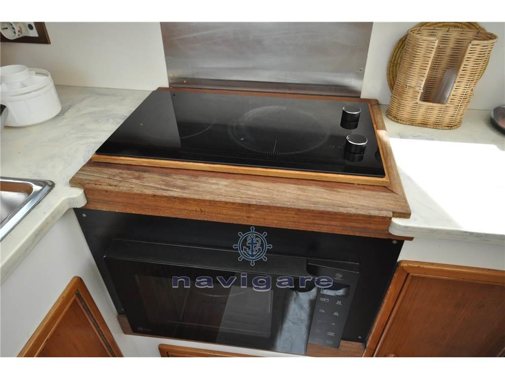 Cabina con letto a V di prora, Cabina ospiti separata, Bagno Separato. Piano cucina (fuochi induzione nuovi 2023) arredato a U con lavello e forno, Ampio salone con doppio divano. Ampio pozzetto con tuna-door per uscita in pedana di poppa