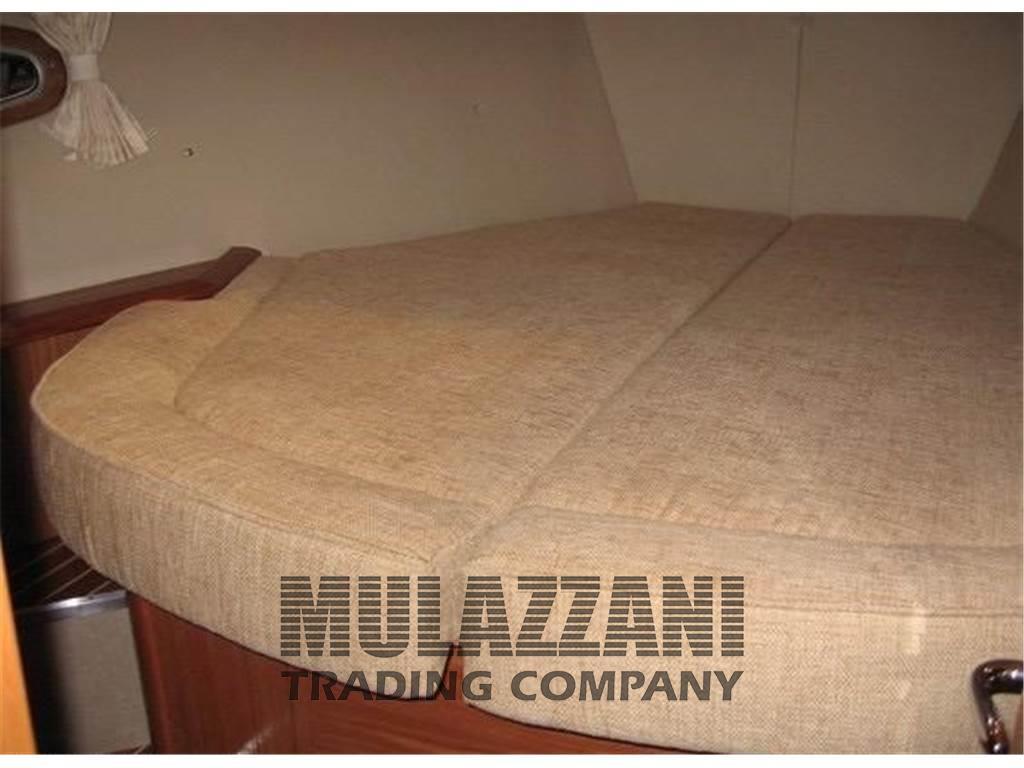 Il progetto dello studio J&J si caratterizza per la tuga dalle ampie finestrature e lo scafo dai grandi volumi che permette di disporre di interni spaziosi, in linea con le esigenze di una moderna barca da crociera.