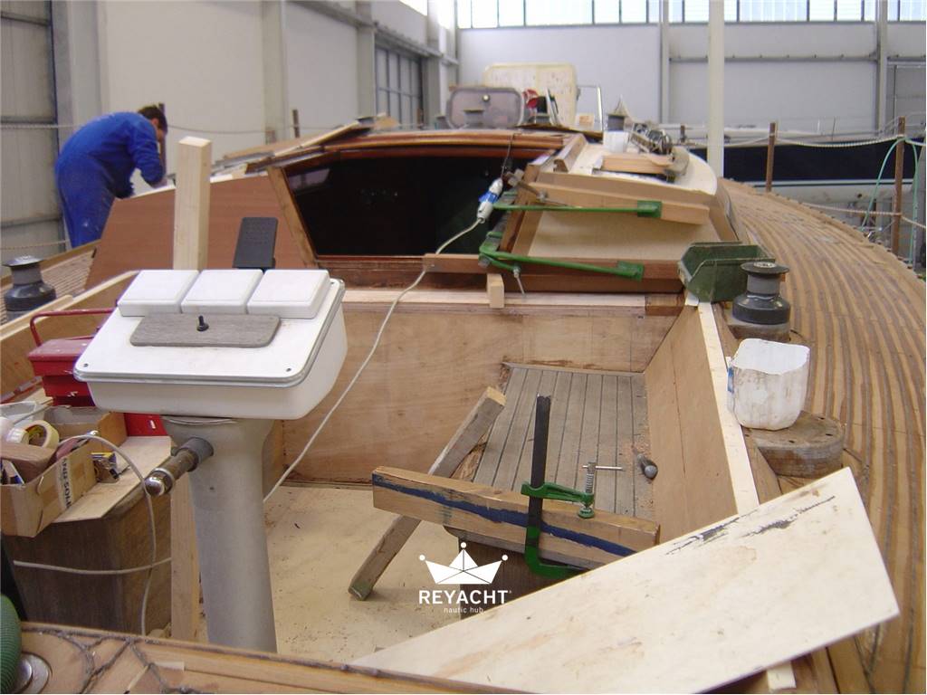 rifatta completamente la coperta in teak con spessori originali e vernciata l’opera morta,  sbarco e modifica ispezione serbatoi2010.