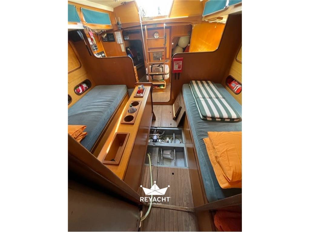 Buona dotazione di vele con randa fiocco avvolgibile al 80/90% di efficienza e un MPS concalza e bompressoa prua.
