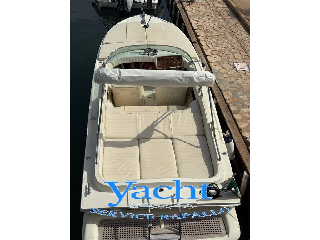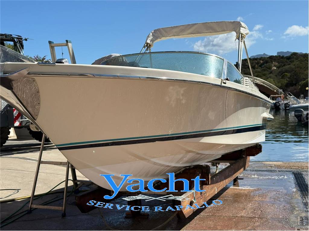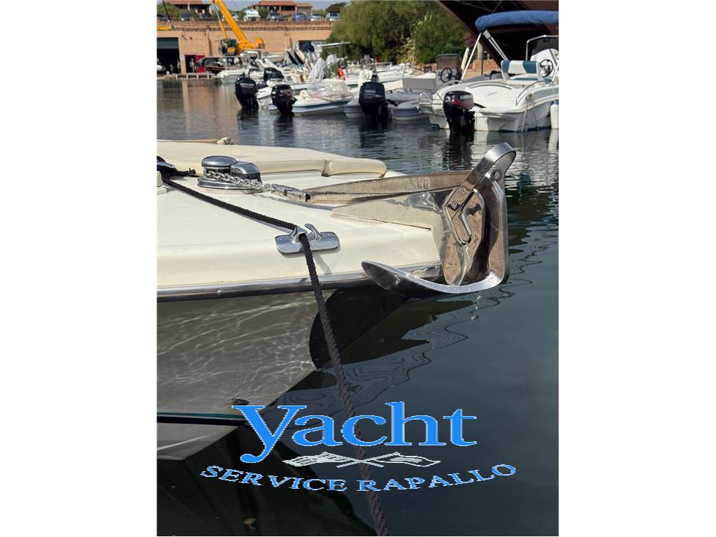 Rimessaggio a terra – manutenzioni annuali costanti – scafo bianco e doppia line a di gallegiamento bicolore – cuscineria 2020 – motore sbarcato 2025 per tagliando – sostituzione cuffie piede ogni due anni.