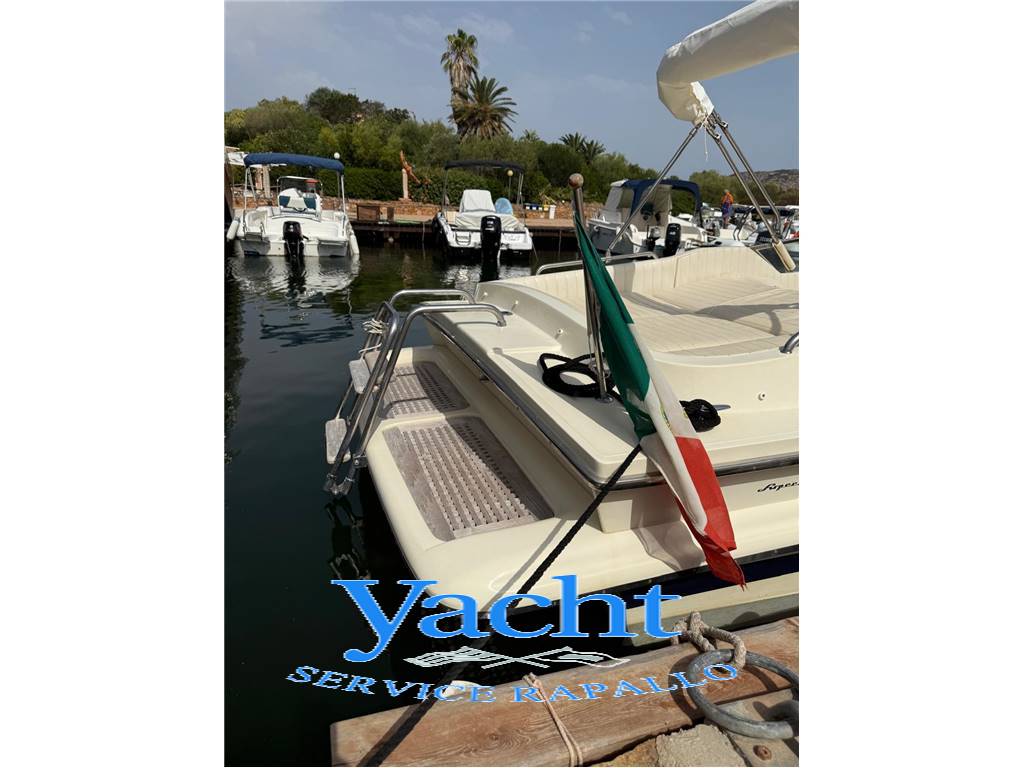 verricello salpa ancora – ancora e 50 mt catena in acciaio inox – scudo prua in acciaio inox – scaletta bagno – n. 1 batteria – pompa di sentina – tendalino bimini parasole in acciaio inox – specchietto retrovisore – telo di chiusura parabrezza/poppa.
