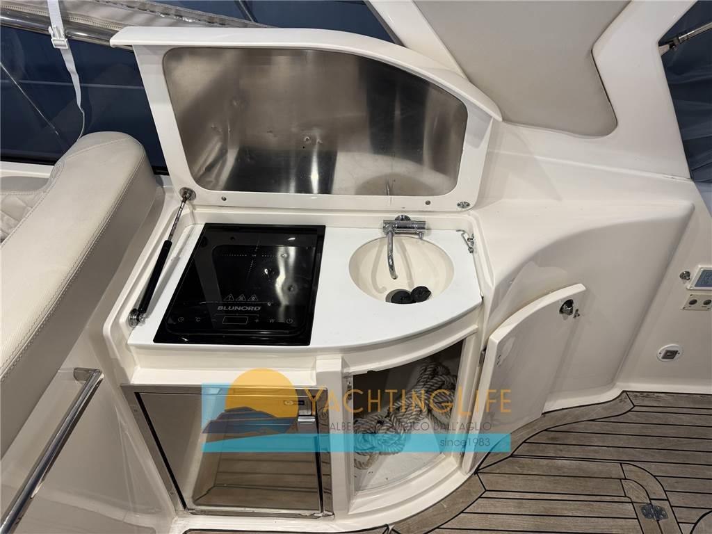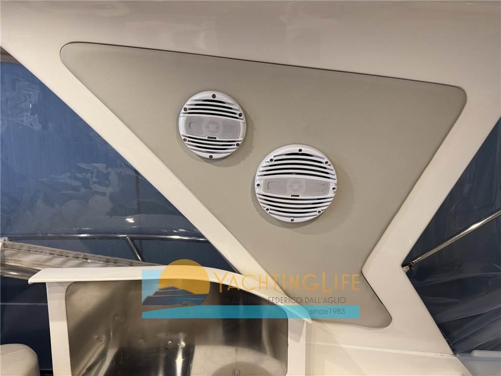 Altoparlanti, Aria condizionata, Bimini, Boiler, Cucina (solo esterna), Cuscineria completa, Estintore, Frigorifero esterno, Frigorifero interno, Giubbetti di salvataggio, Impianto TV, Pavimento interno in legno, Piastra in vetroceramica (a induzione), Prese interne 12v, Prese interne 220v, Radio AM/FM, Riscaldamento, Telo copriconsolle, TV, WC marino elettrico (2026), Zattera di salvataggio