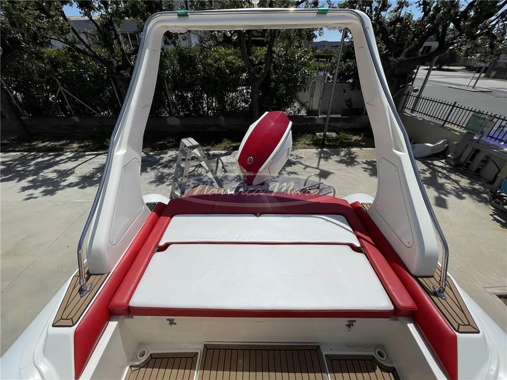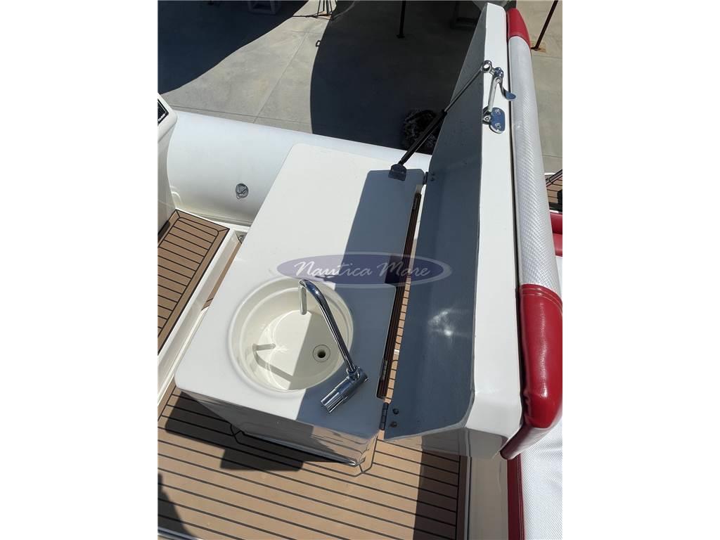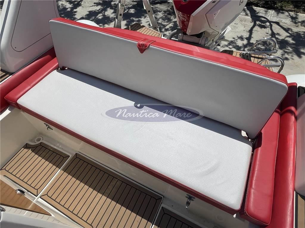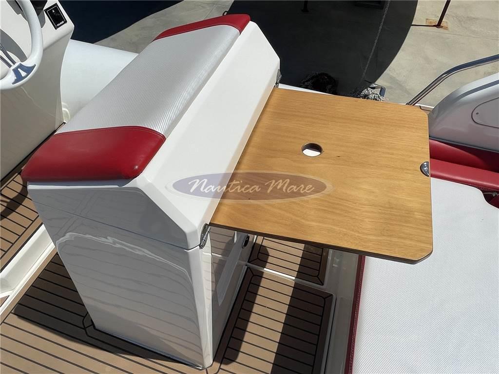 Accessori: Roll-bar con luci di navigazione + Plancette e scaletta bagno + Serbatoio acqua dolce + Doccetta a poppa + Verricello elettrico con ancora inox + catena + GPS Garmin + Ecoscandaglio con trasduttore a poppa + VHF fisso + Rivestimento pozzetto e plancette in gomma + Teli copri scafo e copri motore + Cuscineria completa prua e poppa + Lavello e tavolo nella seduta di guida.