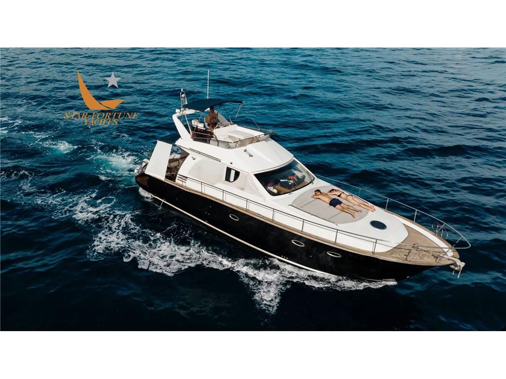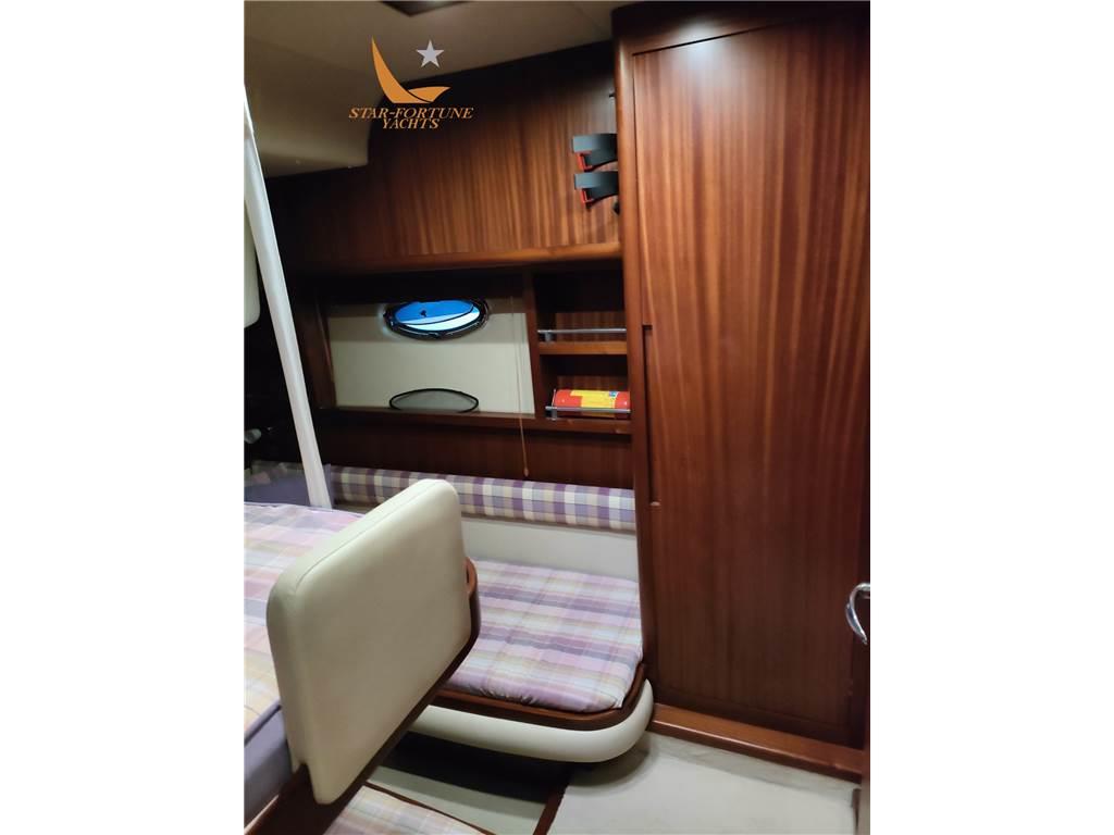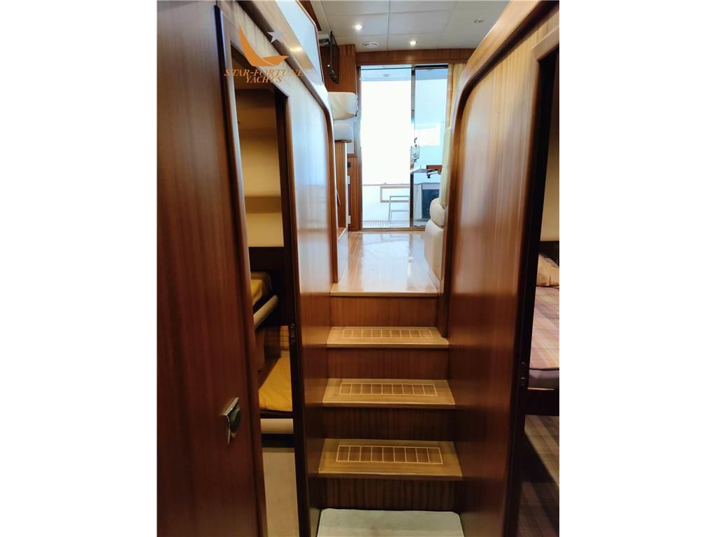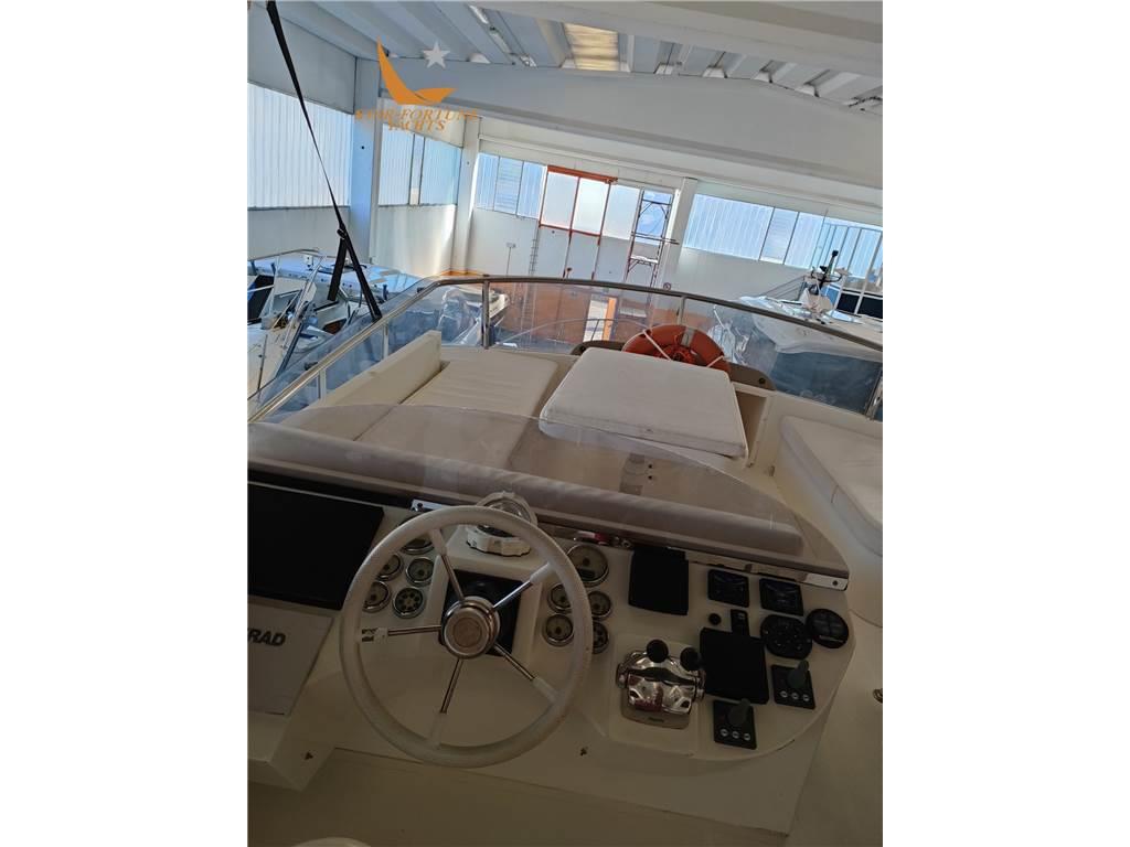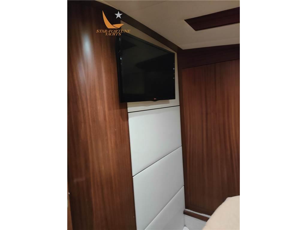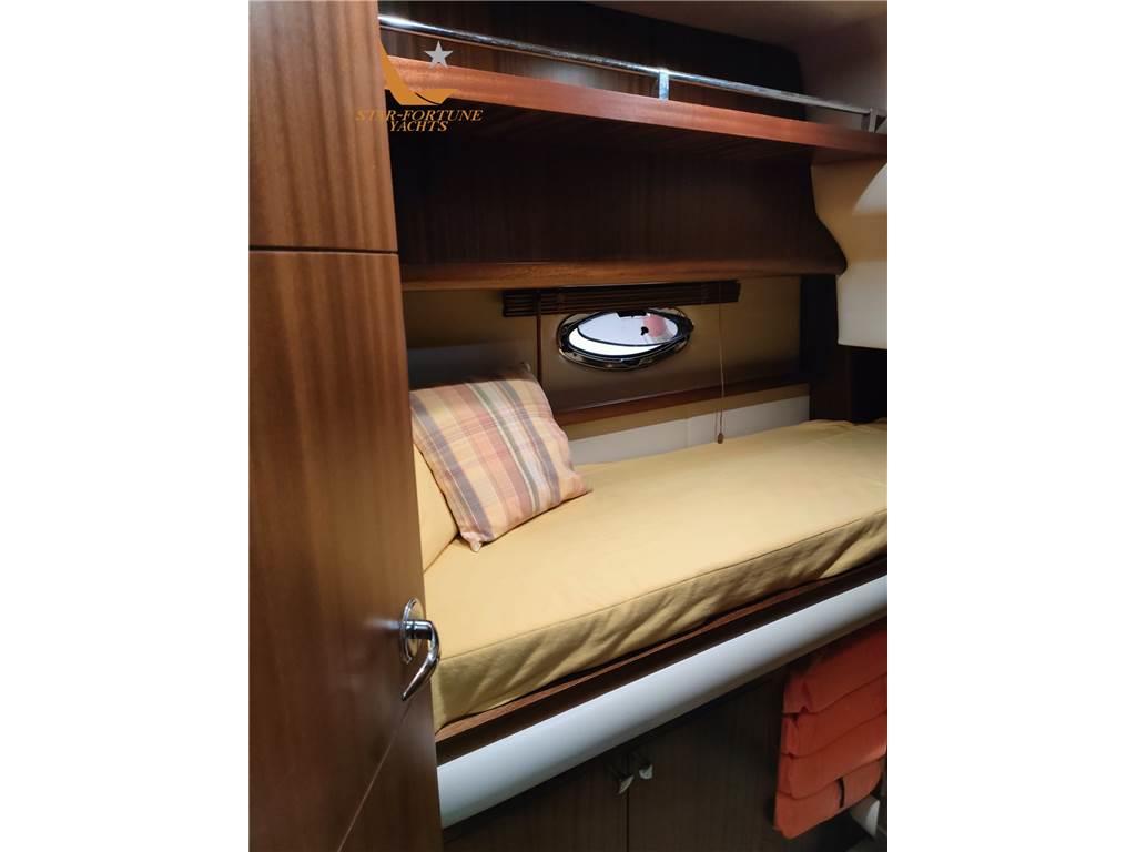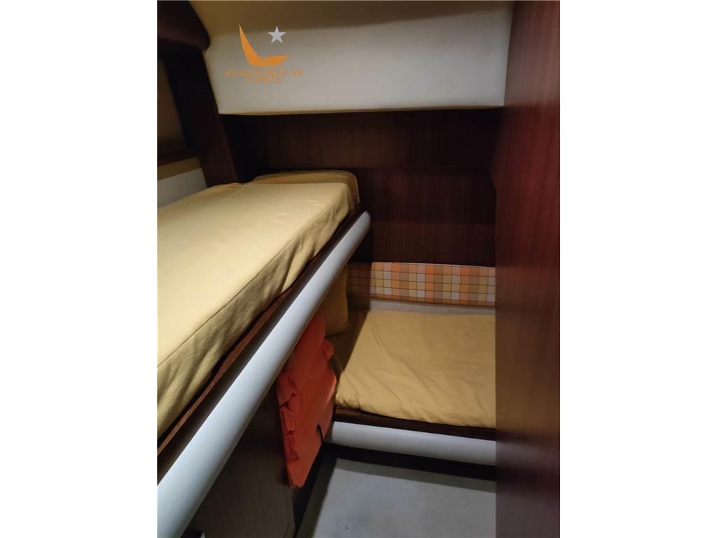 Acqua Calda, Aria condizionata (calda/fredda circuito separato in ogni locale), Boiler, Cucina, Cuscineria completa, Cuscineria di poppa, Cuscineria di prua, Cuscineria fly, Cuscineria Pozzetto, Frigorifero interno, Impianto TV, Inverter, Microonde, Pavimento interno in legno, Piastra in vetroceramica, Prese interne 220v, Radio AM/FM, TV, WC marino elettrico, Altre dotazioni: