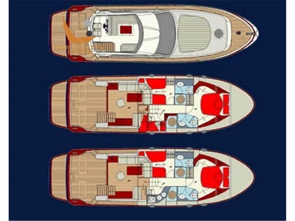 Ancora (in acciaio), Doccia esterna, Doppia timoneria, Elica di poppa - stern thruster, Elica di prua - bow thruster, Flap idraulici, Impianto antincendio, Passerella (idraulica), Piattaforma (da bagno porta tender), Pompa di sentina automatica, Pompa di sentina manuale, Porta ingresso, Pozzetto Teak, Presa 220V banchina, Salpa Ancore Elettrico, Scaletta da bagno.