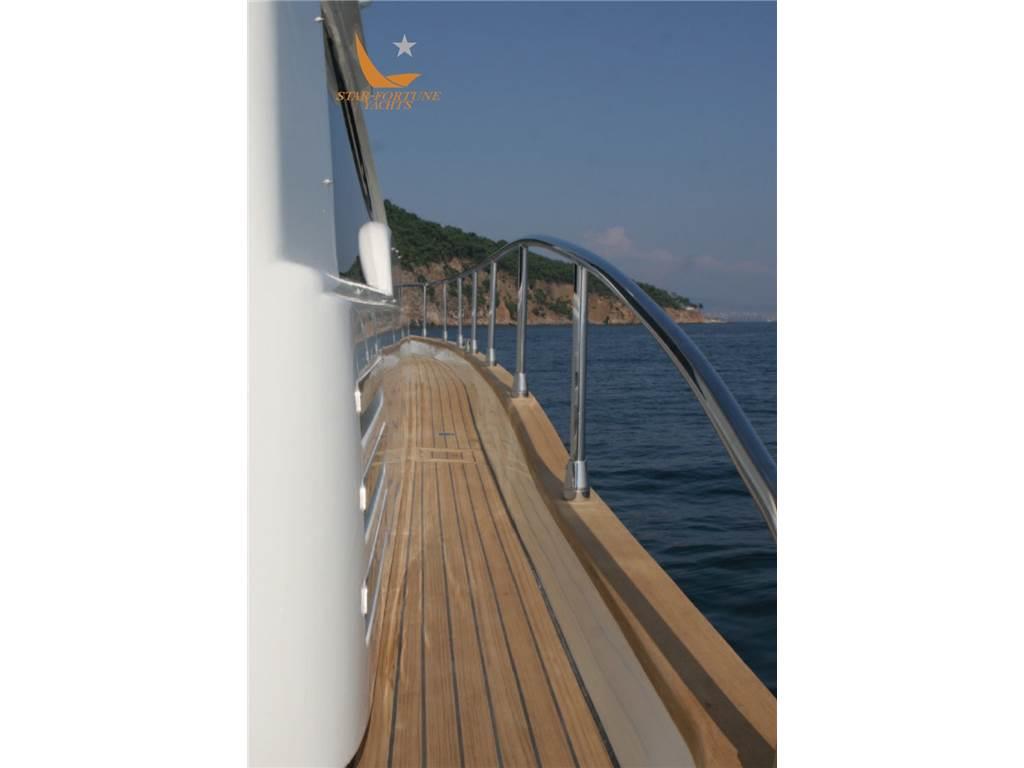 Ancora (in acciaio), Autoclave, Batterie, Bussola, Camminamenti laterali in teak, Caricabatterie, Contametri catena, Doccia esterna, Doppia timoneria, Ecoscandaglio, Elica di poppa - stern thruster (con batteria dedicata e stacca batteria,), Elica di prua - bow thruster, Flap idraulici, GPS, Impianto antincendio, Luci di navigazione, Passerella (idraulica), Piattaforma (da bagno porta tender), Pilota automatico, Plotter, Pompa di sentina automatica, Pompa di sentina manuale, Porta ingresso, Pozzetto Teak, Presa 220V banchina, Quadro comandi, Radio VHF, Salpa Ancore Elettrico, Scaletta da bagno