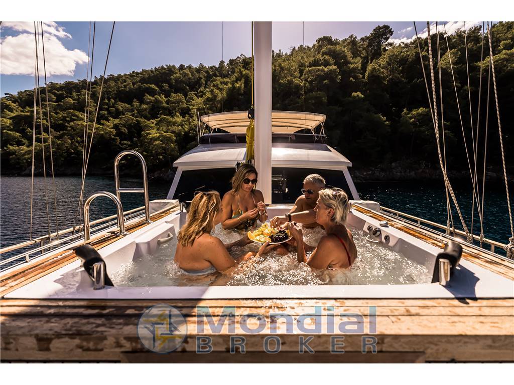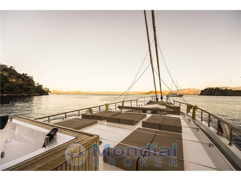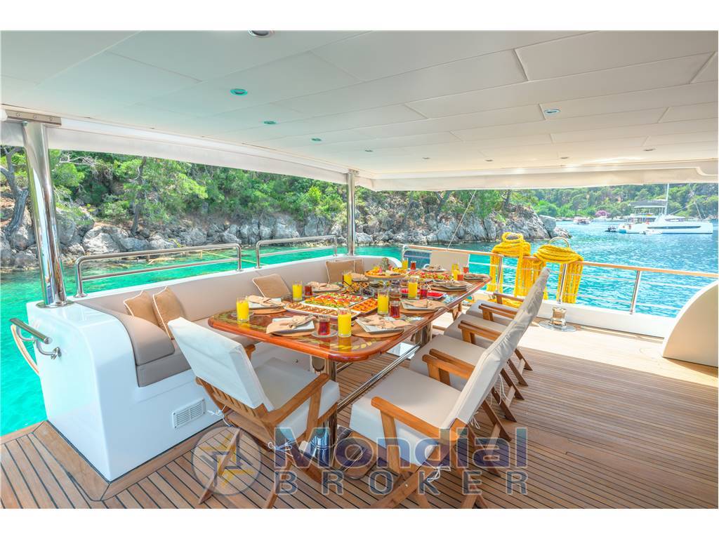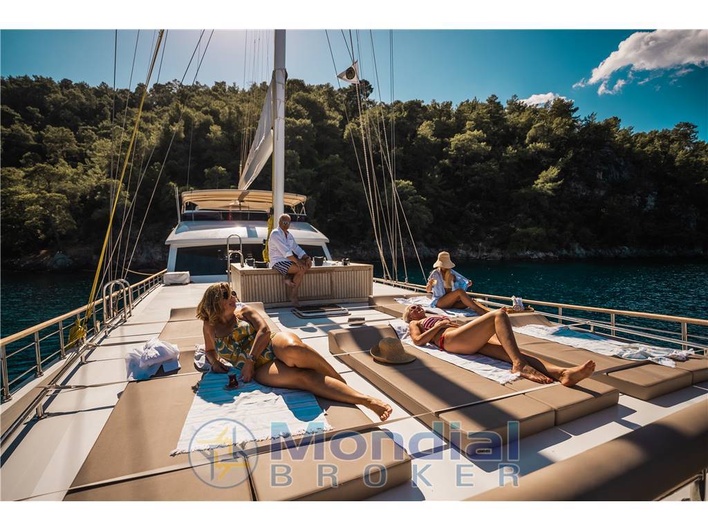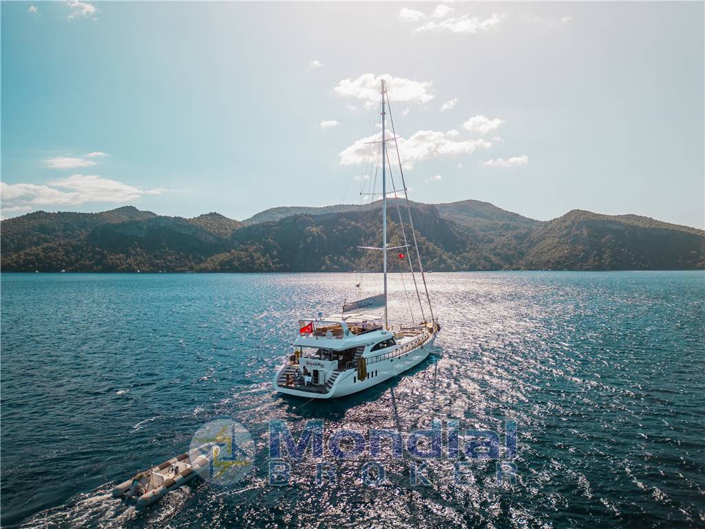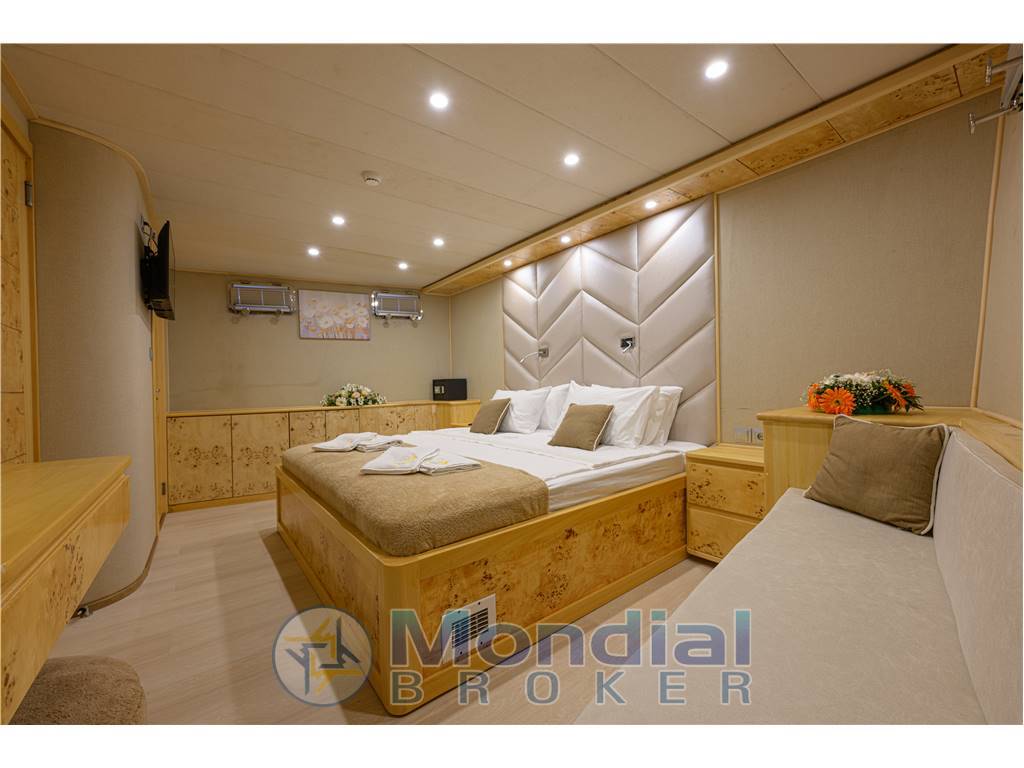 Le cinque cabine, tra cui una master e quattro doppie, accolgono fino a 10 ospiti in ambienti climatizzati, progettati per garantire privacy e relax. Ogni cabina dispone di bagno privato, offrendo uno spazio riservato e confortevole per il riposo. L’esperienza è arricchita dalla cucina, curata da uno chef dedicato che propone piatti autentici della tradizione turca, preparati con ingredienti locali.