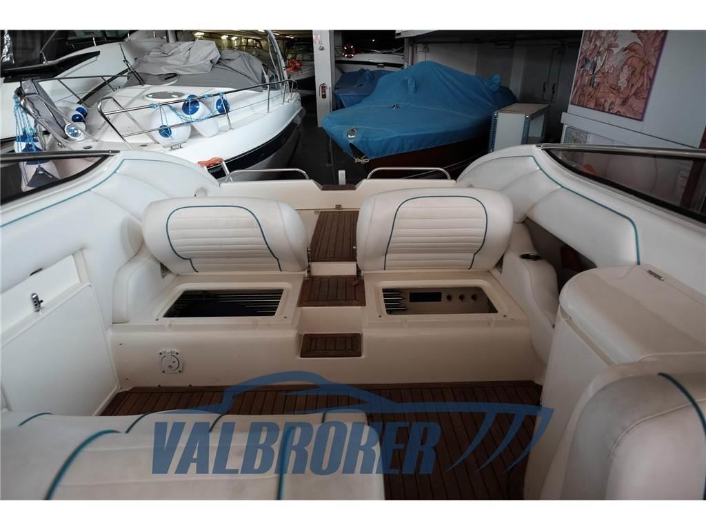 Pratica e maneggevole day boat con look accattivante. Bellissimo esemplare del cantiere inglese che esprime al meglio la sportività e qualità nel tempo. Usato Lago Maggiore. Perfettamente funzionante. Pozzetto in teak, dinette interna in pelle fiore originale, mobili interni in radica. Doppio prendisole fisso a poppa. Motorizzato 2xVolvo Penta 5.7 GL V8 benzina. 2022: manutenzione trasmissioni. 2024: sostituito serbatoio benzina. 2025: lucidatura murate, n. 2 batterie nuove, Levigatura teak su plancetta, pulizia, sbiancamento e applicazione olio per teak, nuova pompa trim.