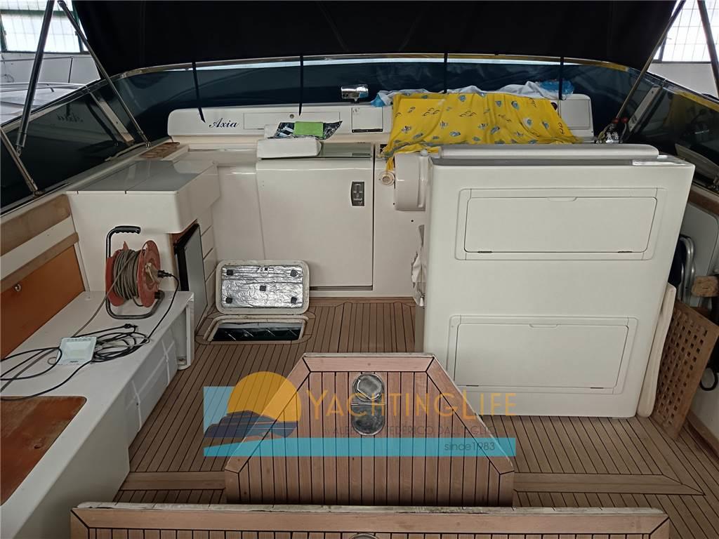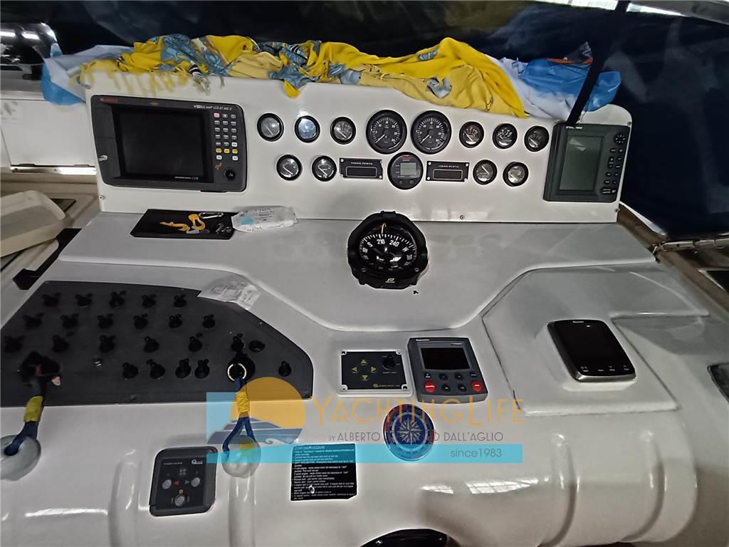 Allarme motore, Allarme sentina, Ancora, Antenna radar, Autoclave, Autogonfiabile, Batterie, Bussola, Caricabatterie, Contamiglia, Doccia esterna, Ecoscandaglio, Elica di prua - bow thruster, Flap idraulici, GPS, Lavandino nel Pozzetto, Luci di cortesia, Passerella (idraulica), Piattaforma, Pilota automatico, Pompa di sentina automatica, Pompa di sentina elettrica, Pozzetto Teak, Presa 220V banchina, Radar, Radio VHF, Rollbar, Salpa Ancore Elettrico, Scaletta da bagno, Tavolo pozzetto, Tromba