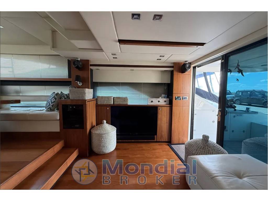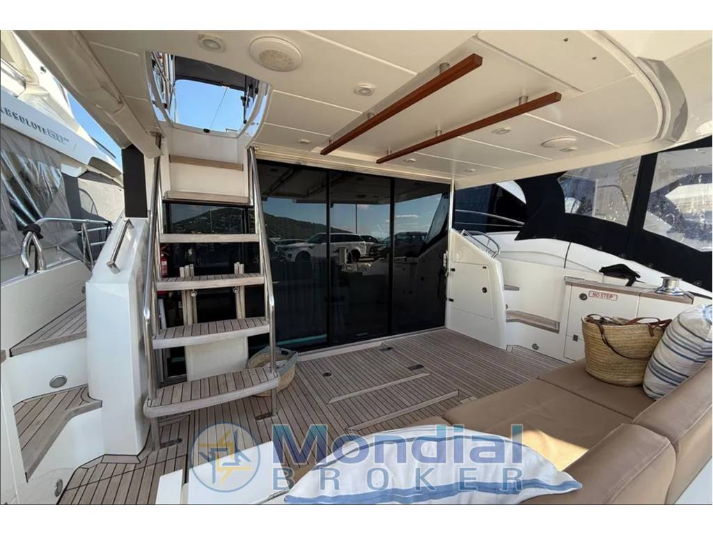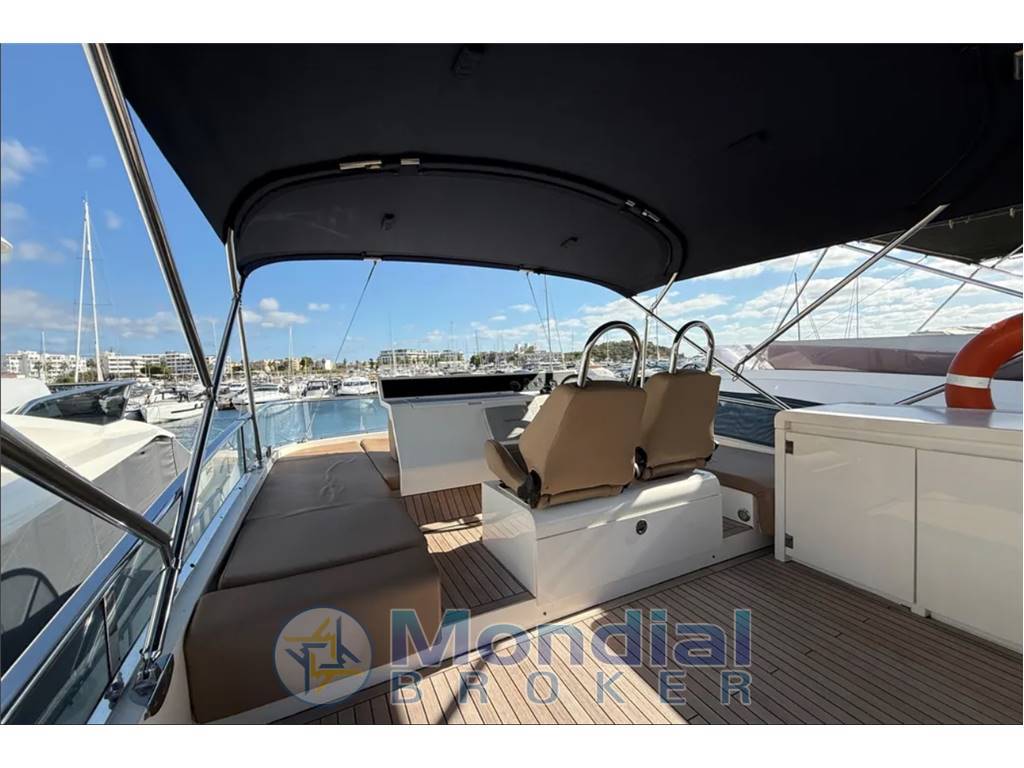 Fly attrezzato: Postazione di guida, Divanetti prendisole, Zona pranzo con divano a C e tavolo, Mobile bar con frigo, lavello e piano cottura, Bimini top.