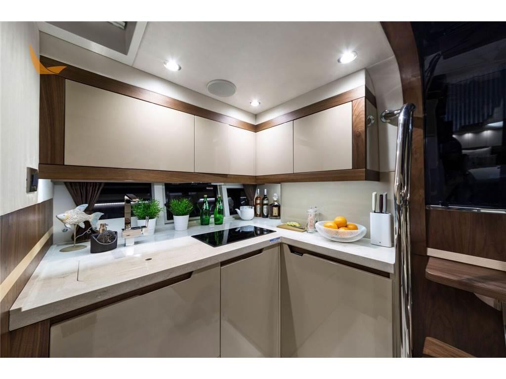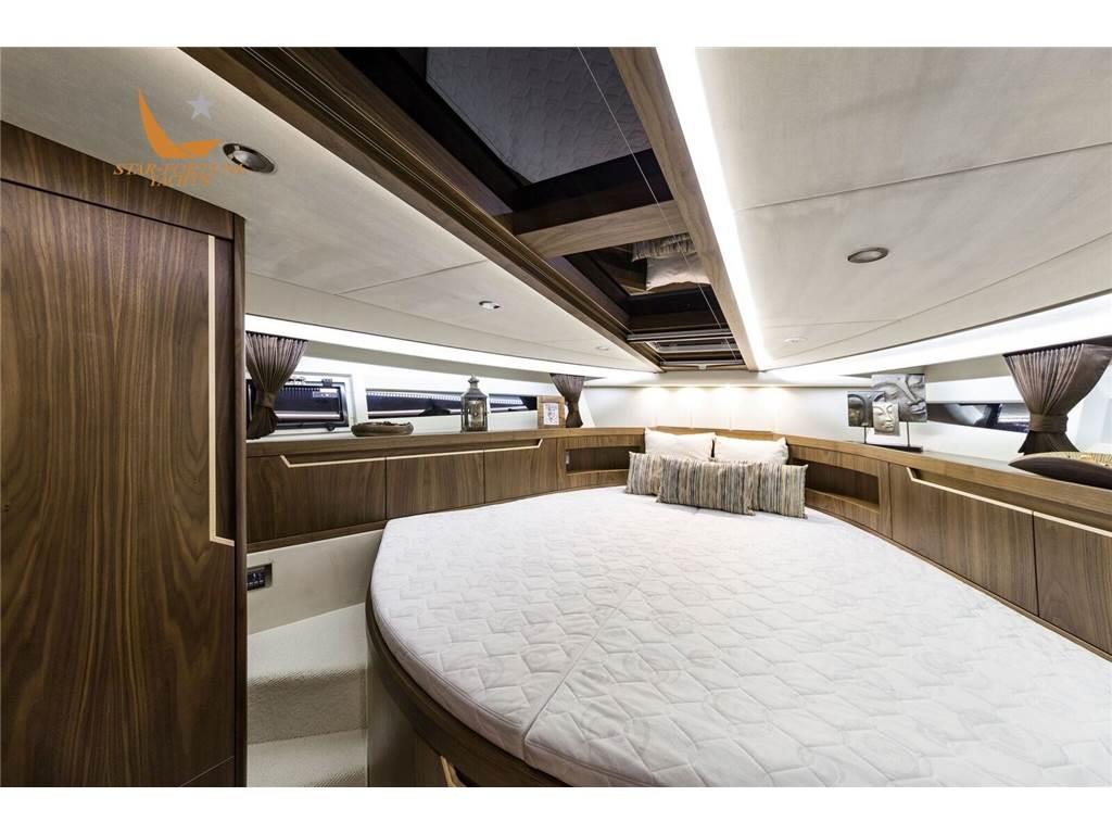 Le ampie finestre aggiungono luce naturale al salone, alla cucina e alle cabine degli ospiti. Un vasto salone sul ponte principale sarà sicuramente un'area di ritrovo popolare per la famiglia e gli amici, con il bar laterale di dritta che dà una sensazione di spazio aperto. Il timone beneficia di ampie finestre e di un parabrezza a vetro singolo che offre una vista a 360 gradi. Lo spazio di alloggio sul ponte inferiore dispone di una cucina completa e di due cabine con bagno separato, per garantire agli ospiti comfort e privacy. La suite dell'armatore si trova a metà nave e occupa l'intera larghezza dello yacht, consentendo un'incredibile quantità di volume e di spazio di stivaggio.