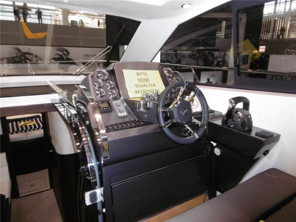 Il nuovo yacht hardtop di 13,5 metri, progettato da Tony Castro Yacht Design, è stato creato e costruito per essere un perfetto day cruiser per tutti gli appassionati di sport. Il suo stile esterno e la disposizione degli interni rivelano il classico profilo del Galeon con un tocco di modernità. Gli interni dello yacht sono stati progettati per essere luminosi e accoglienti, con un layout funzionale ed equilibrato. I materiali includono impiallacciature accuratamente selezionate, coriani, tessuti di alta qualità e legno con finitura opaca o lucida a specchio.