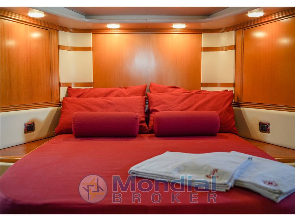 On the lower deck, the luxury and elegance are combined in sober, simple finishes with a living room with a wellequipped kitchen and a C-shaped divan in the living room, with an LCD TV and a stereo system.