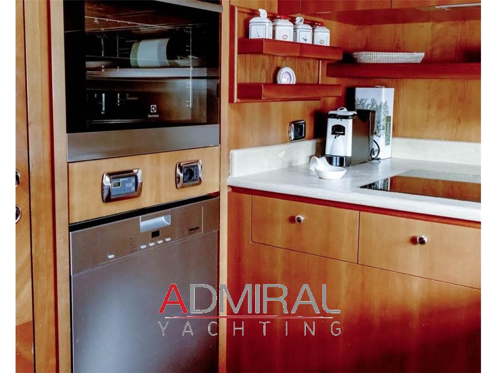 Allarme motore, Allarme sentina, Ancora (Bruce Kg 50 zincata + 100 mt. catena 14mm), Antenna Satellitare TV (nuova 2024), Aria condizionata (Frigomar, nuova 2024), Autoclave, BBQ/ Grill (Esterno), Bimini, Boiler (bivalente), Camminamenti laterali in teak, Cassaforte, Clima reversibile, Congelatore, Cucina, Cuscineria completa, Cuscineria di poppa, Cuscineria di prua, Cuscineria Pozzetto, Decoder satellite, Dissalatore (Marinco 160 lt/h), Doccia esterna, Forno, Frigorifero esterno, Frigorifero interno (3), Garage per tender, Hard top, Home Theater (Bose), ICE Maker (professionale), Impianto acque nere, Impianto antincendio, Impianto TV, Inverter, Lavandino nel Pozzetto, Lavasciuga, Lavastoviglie, Luci di cortesia, Microonde, Passerella (idraulica Pin-Craft), Piastra in vetroceramica, Piattaforma (con piano in teak), Pompa di sentina automatica, Pompa di sentina manuale, Ponte in teak, Porta ingresso, Pozzetto Teak, Presa 220V banchina, Presa acqua banchina, Radio AM/FM, Riscaldamento, Scaletta da bagno, Sedile Copilota, Serbatoio Acque Nere, Stereo, Tavolo pozzetto, Telecamera (sorveglianza poppa e motori), Telo copriconsolle, Tendalino (prua e poppa), Tender, TV (6), WC marino elettrico (4), Winch tonneggio di poppa (2), Zattera di salvataggio