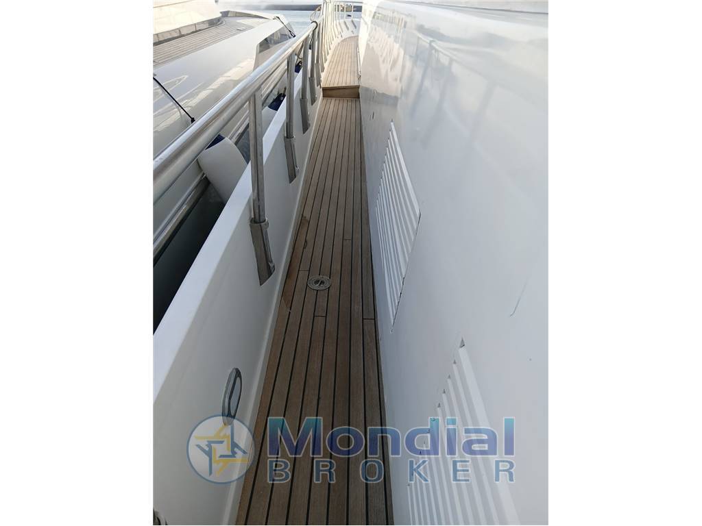 Verricello elettrico, cuscineria esterna, tendalino, tavolo estarno, pozzetto in teak, vetroceramica, forno, passerella idraulica, pedana di poppa maxi riv. in teak, frigo, imp. stereo, imp. tv. sat, boiler, carica batterie, generatore, ecosonda, vhf, gps, pilota automatico, aria condizionata, coperta in teak, roll bar, gruetta per tender, radar, roll bar.