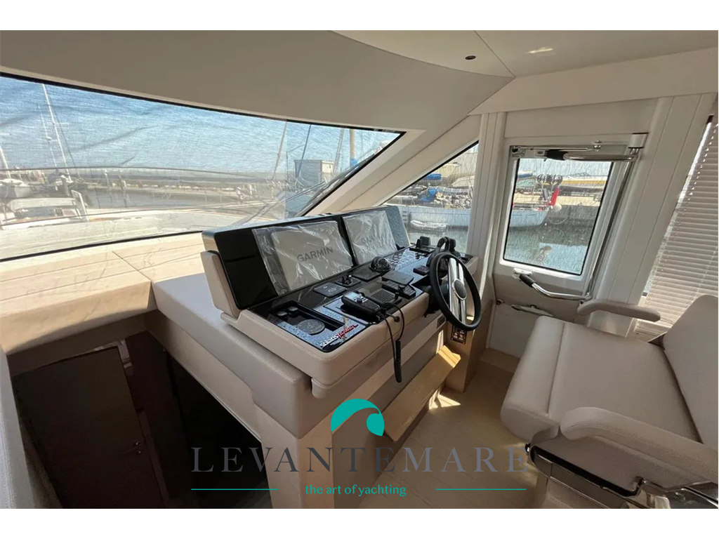 2 Volvo Penta IPS 950 con Auto Dynamic Trim Interceptor – elica di prua (bow thruster) con telecomando e controllo remoto – joystick di manovra (anche nel pozzetto) – 2 winch di ormeggio di poppa – contametri catena digitale – GPS Garmin con mappa Mediterraneo – luci di navigazione – faro orientabile elettrico / faro remoto.