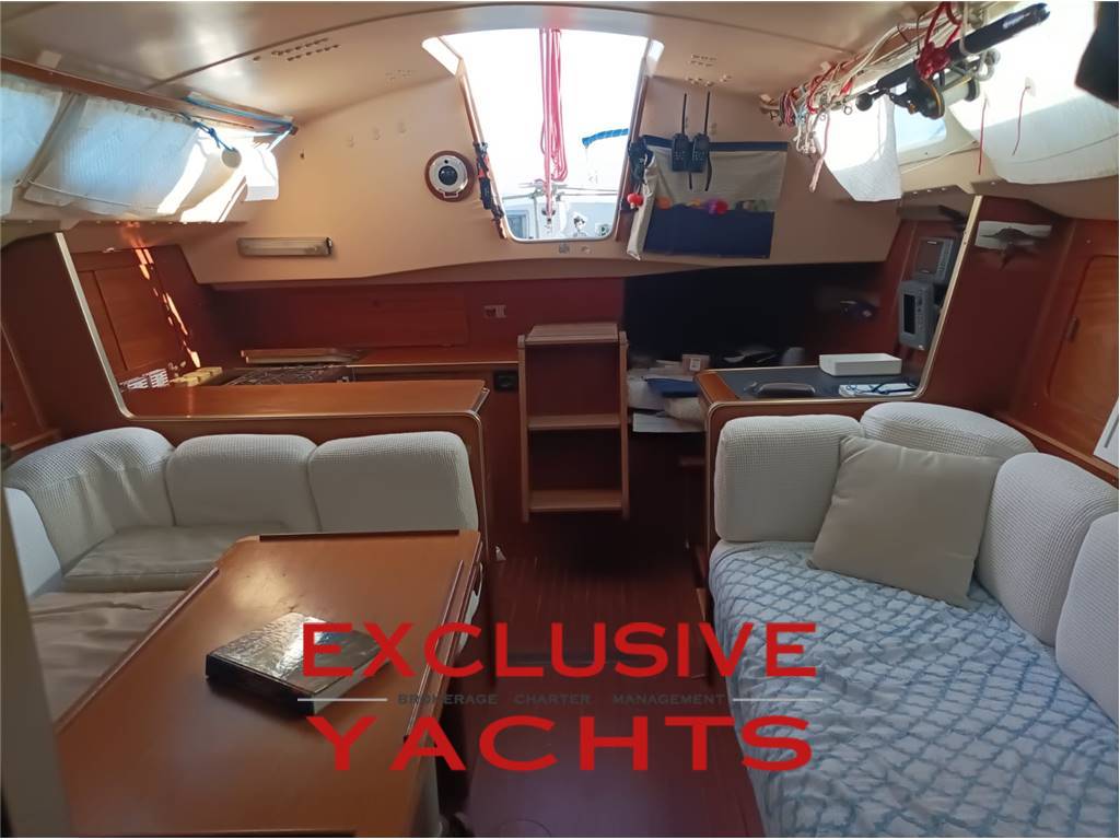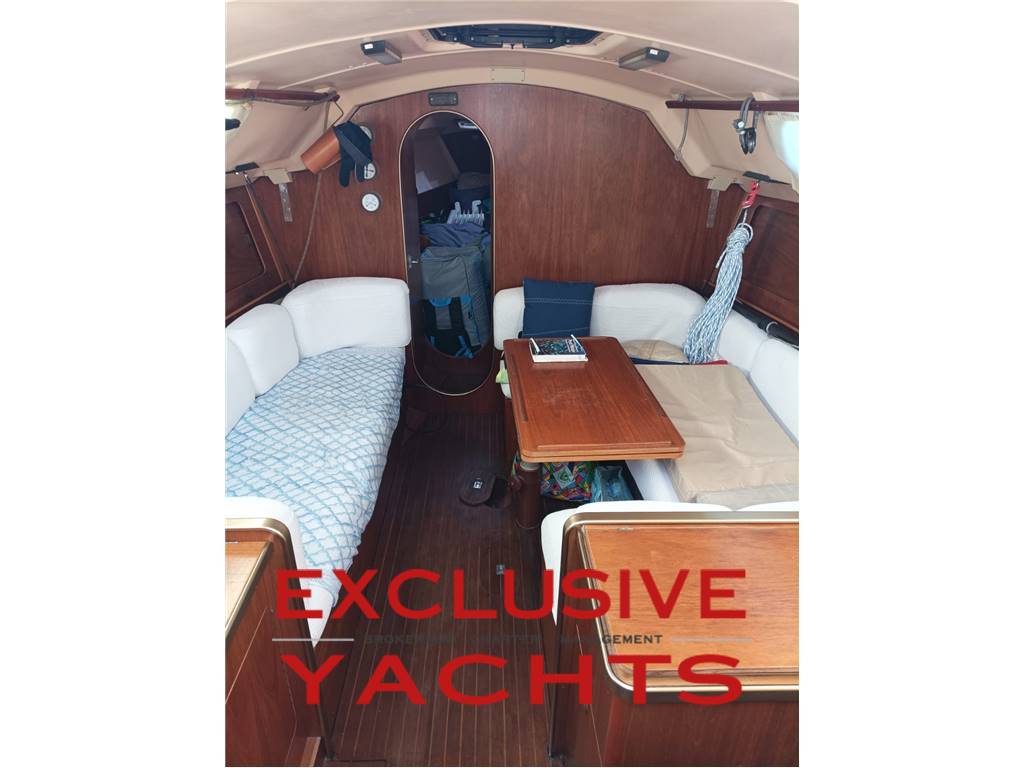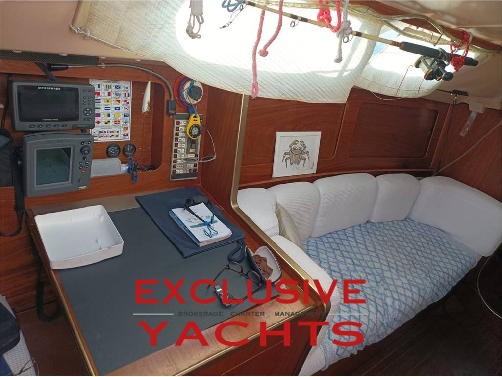 Sotto coperta si trovano spazi ben organizzati: una cucina a “U” funzionale, un quadrato accogliente, tavolo da carteggio, locale wc, una cabina doppia a prua e una cuccetta a poppa.