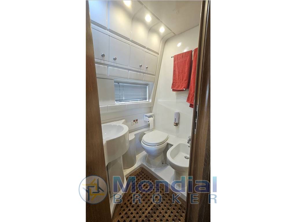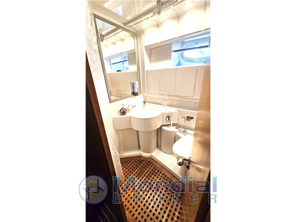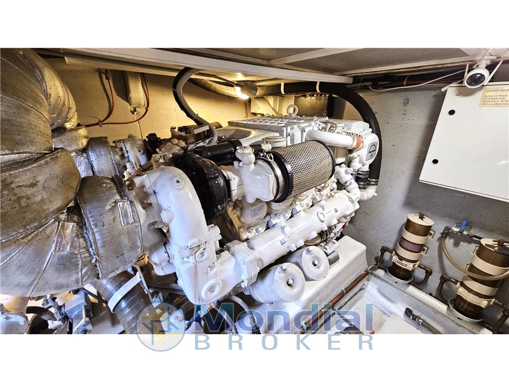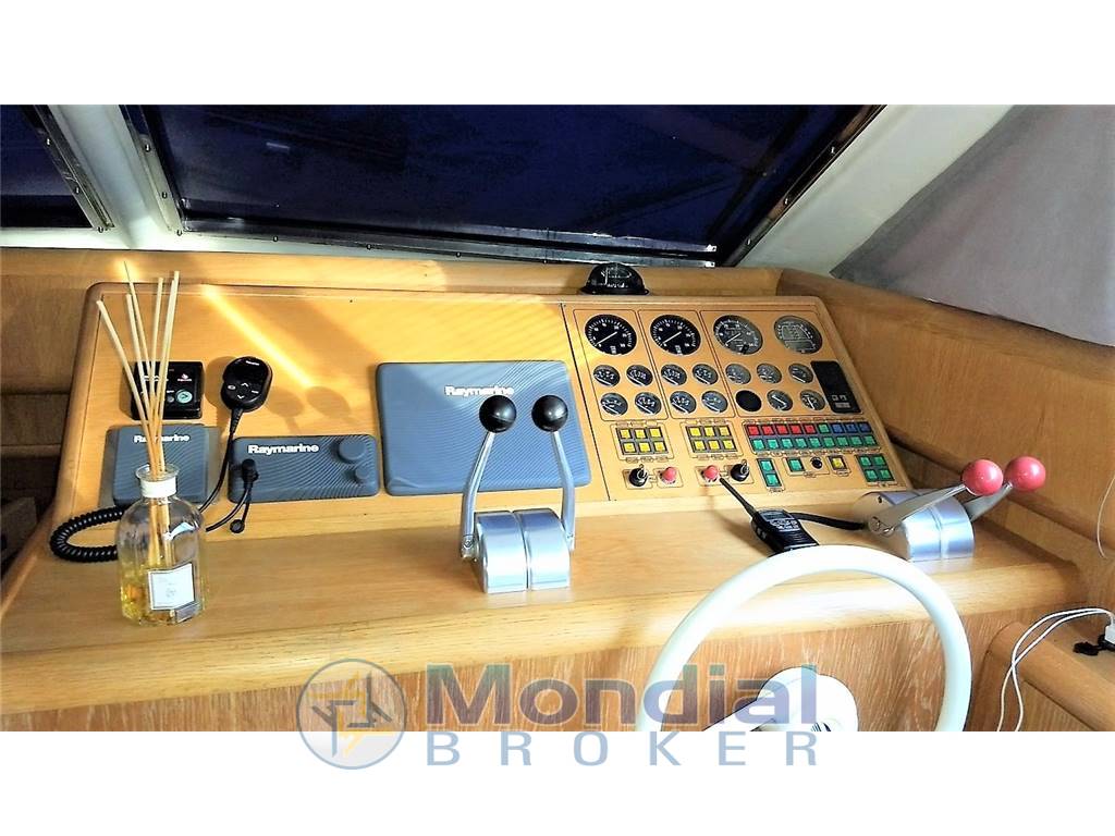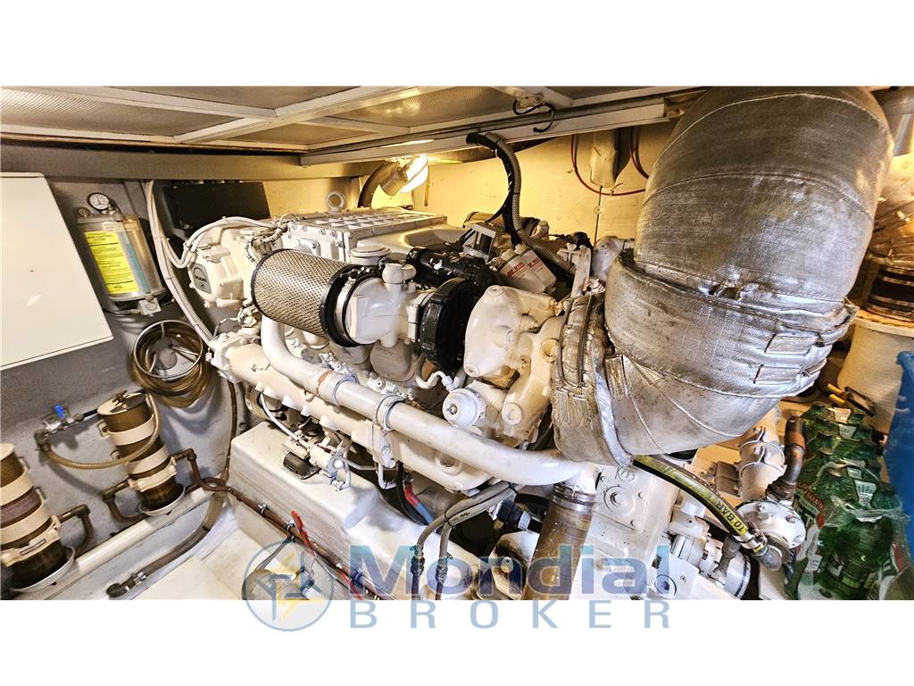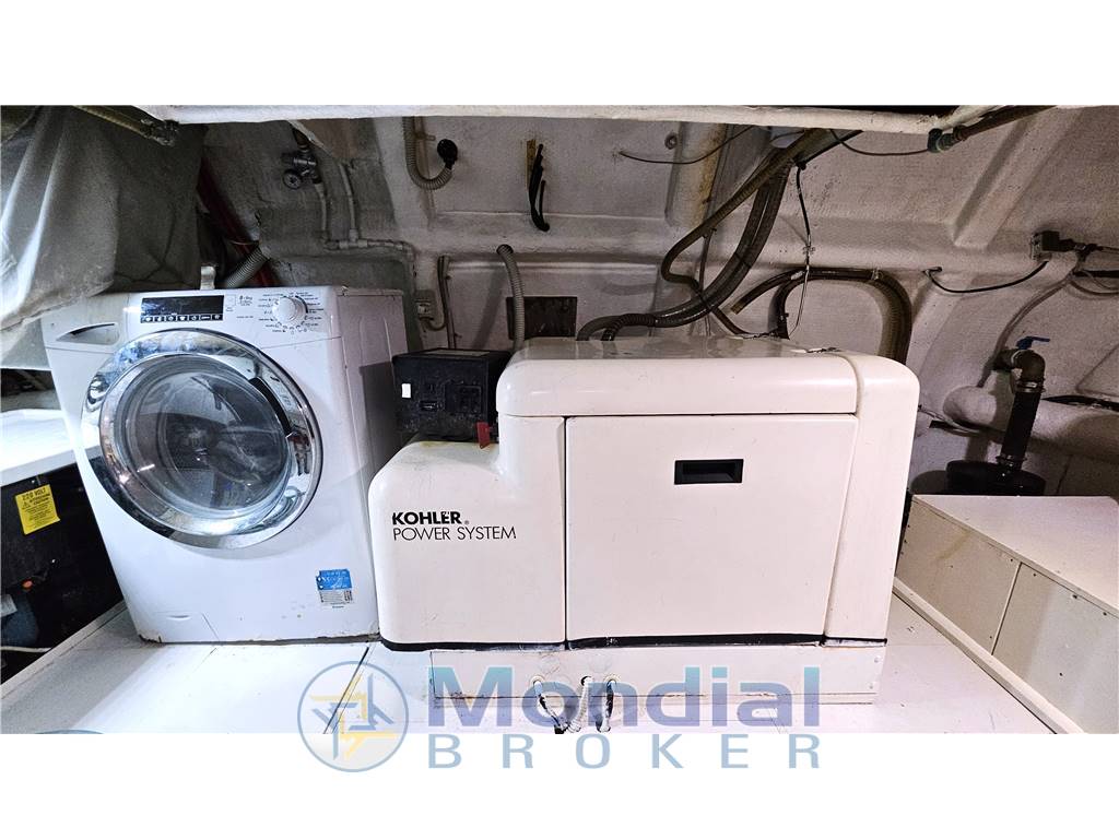 Tender e fuoribordo, Passerella idraulica, Elica di prua, Verricello elettrico, Flaps idraulici, Manette idrauliche, Pedana poppa maggiorata, Clima estate inverno con termoregolazione autonoma per ogni ambiente, Frigo anche sul Fly, Lavastoviglie, Lavasciuga, Forno ventilato, Stereo, TV satellitare e analogica, Generatore, Inverter.