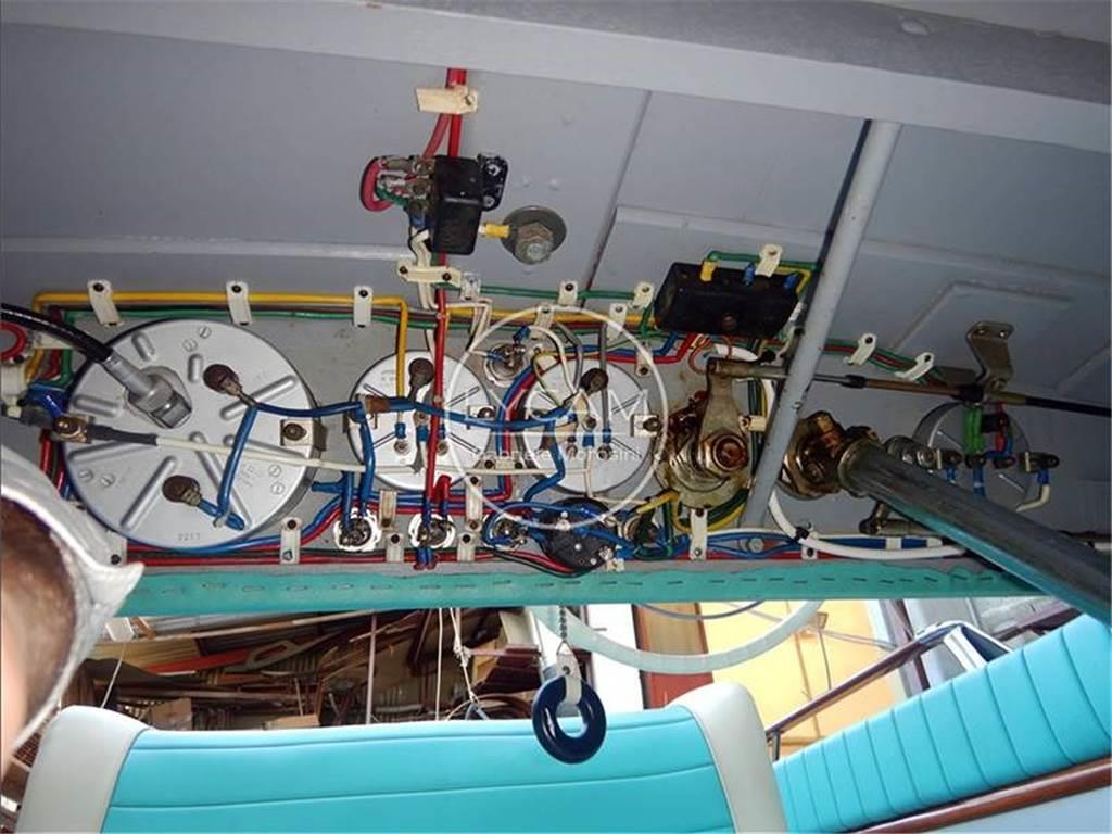 Strumentazione SW/Chris Craft con contagiri/conta ore, indicatore livello temperatura, amperometro e indicatore livello carburante; Leva gas motore; Leva invertitore