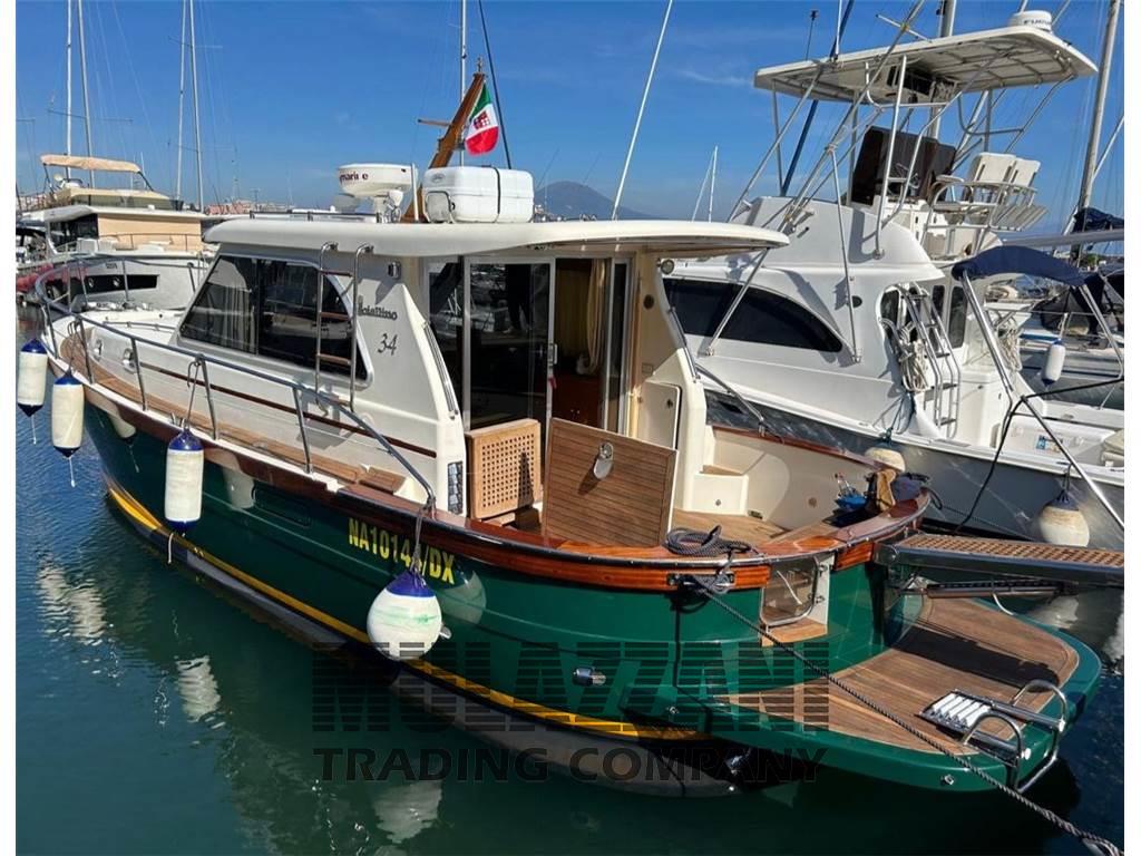 Il gozzo Sciallino 34′ Cabin è un gozzo classico, stabile, potente e funzionale. Lo scafo è costruito in vetroresina P.R.F.V. stratificata a mano con irrigidimenti strutturali (paratie, longheroni e madieri). La coperta è in vetroresina P.R.F.V. a sandwich stratificata a mano. Le paratie portanti sono collegate strutturalmente alo scafo e alla coperta. Gli allestimenti interni sono in compensato marino essenza “ Okume”.