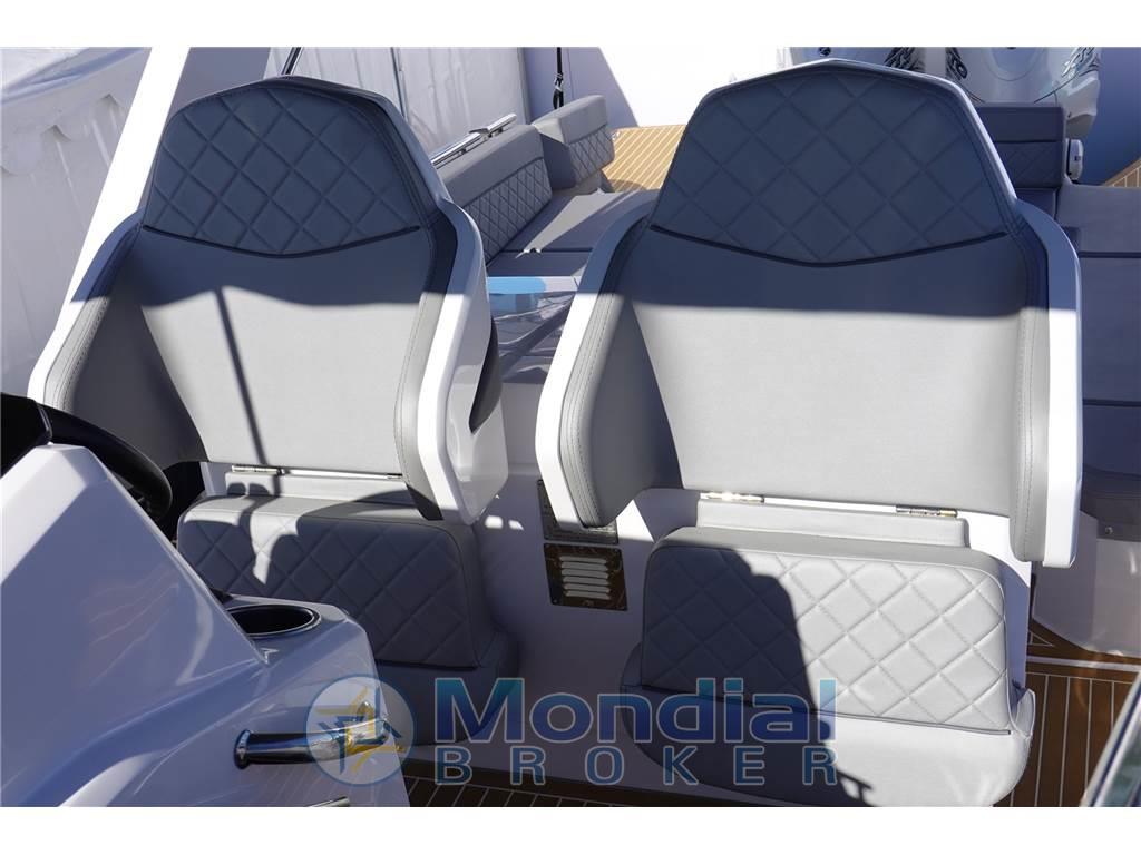 Boiler (Impianto Acqua calda + Boiler), Cuscineria completa, Cuscineria di poppa, Cuscineria di prua, Fornello (Fornello a Gas), Frigorifero esterno (90 LT), Macchina caffè (Nespresso 220v), Microonde, Prese interne 12v, Prese interne 220v, Radio AM/FM, Stereo (Stereo FUSION BT), Tendalino, WC marino elettrico (Wc + Impianto acque nere), Teak Sintetico sulle plancette, Pozzetto e Prua– Colore comento a scelta Nero o Bianco