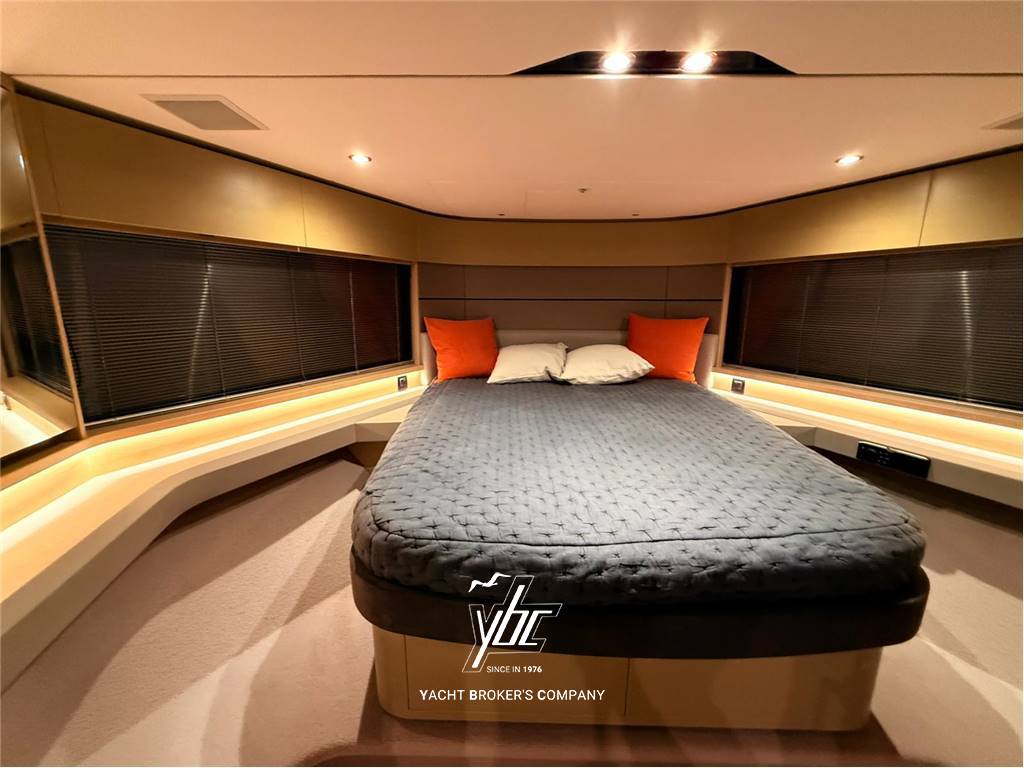 Il Princess V60 si distingue per il suo design raffinato e per spazi studiati per offrire comfort e convivialità. L’ampio pozzetto accoglie gli ospiti con un comodo divano a U, tavolo in teak e un grande prendisole ombreggiato da una tenda elettrica, ideale per rilassarsi a bordo. La dinette, estremamente luminosa grazie alle ampie vetrate e all’hardtop, si integra alla perfezione con la cucina a poppa, completa di ogni comfort e dotata di un pratico frigorifero a colonna. Una finestra apribile collega direttamente la cucina con il pozzetto, creando un ambiente unico. A dritta, un tavolo da pranzo con divanetto completa la zona pranzo, mentre più avanti un grande divano a C guarda verso un mobile con TV da 50”. La postazione di guida, con il caratteristico finestrino elettrico Princess, assicura un’ottima ventilazione e un controllo totale dell’imbarcazione.