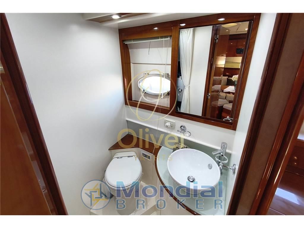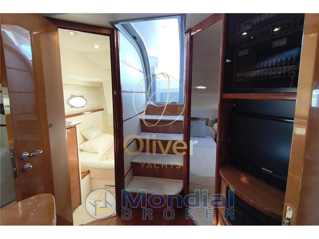 Gli interni di questo Pershing 50 offrono uno spazio sorprendente per un open sportivo, con una distribuzione razionale e una qualità percepita nettamente superiore alla media. La cabina armatoriale dispone di bagno privato con box doccia, una soluzione che garantisce privacy e comfort anche in crociera. La cabina matrimoniale ospiti e la cabina doppia con letti in piano rendono l’imbarcazione ideale per famiglie o due coppie, assicurando tre zone notte vere e ben divise.