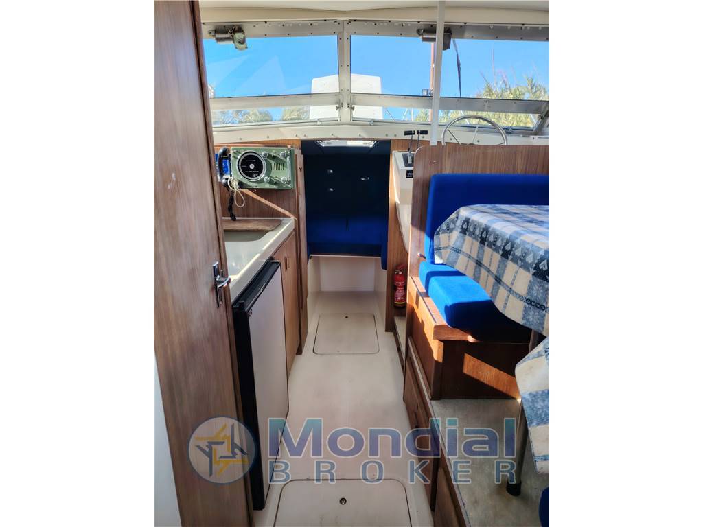 Unica cabina a prua, dinette con 2 sedute con tavolo abbattibile e trasformabile, fornello a gas 2 fuochi e lavandino, bagno con wc elettrico, ampio pozzetto con prendisole.
