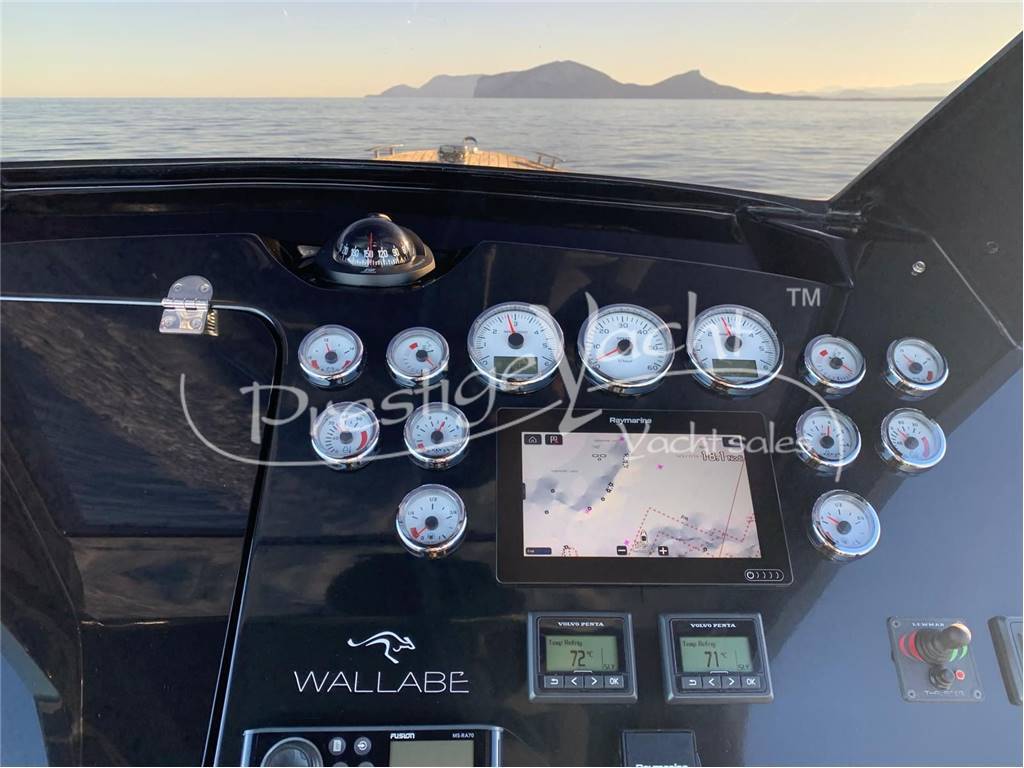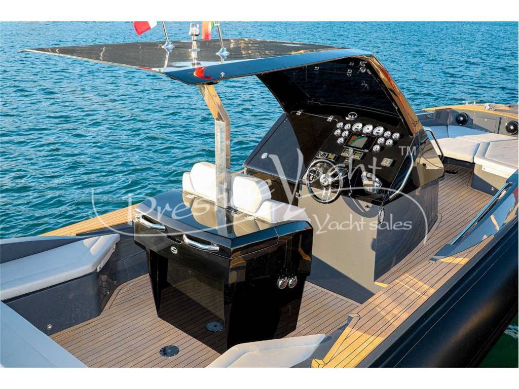 Allarme motore, Autoclave, Camminamenti laterali in teak, Caricabatterie, Colorazione speciale, Doccia esterna, Elica di prua, Flap idraulici, Hard Top, Impianto antincendio, Indicatori flaps, Luci di cortesia, Luci subacquee, Piattaforma, Pompa di sentina automatica, Pompa di sentina manuale, Porta di ingresso, Pozzetto in teak, Presa 220V banchina, Rollbar, Salpa ancora elettrico, Scaletta da bagno, Tavolo in pozzetto, Tromba, Boiler, Impianto acque nere, Prese interne 12V, Prese interne 220V, Wc marino elettrico, Altoparlanti, Stereo, Cucina, Frigorifero esterno, Cuscineria di poppa, Cuscineria di prua, Cuscineria pozzetto, Telo copri consolle, Tendalino