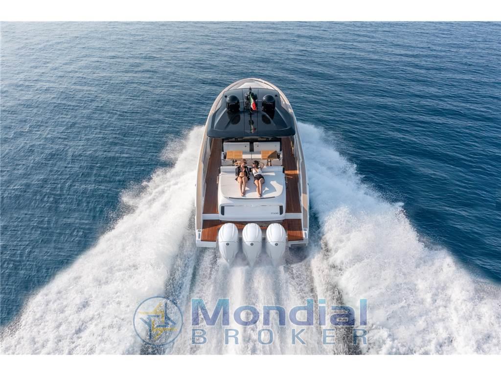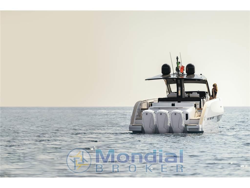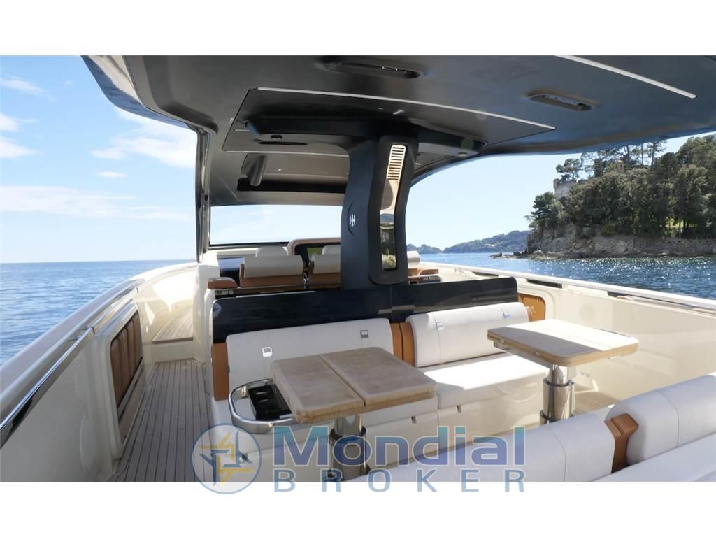 Allarme motore, Ancora, Angolo barra, Apertura Vano Motore Elettrica, Auto Dynamic Trim Interceptor, Autoclave, Batterie, Bussola, Camminamenti laterali in teak, Caricabatterie, Colorazione speciale (Spectrum blue), Comando motori elettronico, Computer di bordo, Doccia esterna, Elica di prua - bow thruster, Hard top (carbonio), Impianto antincendio, Indicatori Flaps, Joystick, Piattaforma (affondabile), Pilota automatico, Plotter con antenna GPS, Pompa di sentina automatica, Pompa di sentina elettrica, Pozzetto Teak, Radio VHF, Salpa Ancore Elettrico, Scaletta da bagno, Sedile Copilota, Tavolo pozzetto, Tromba