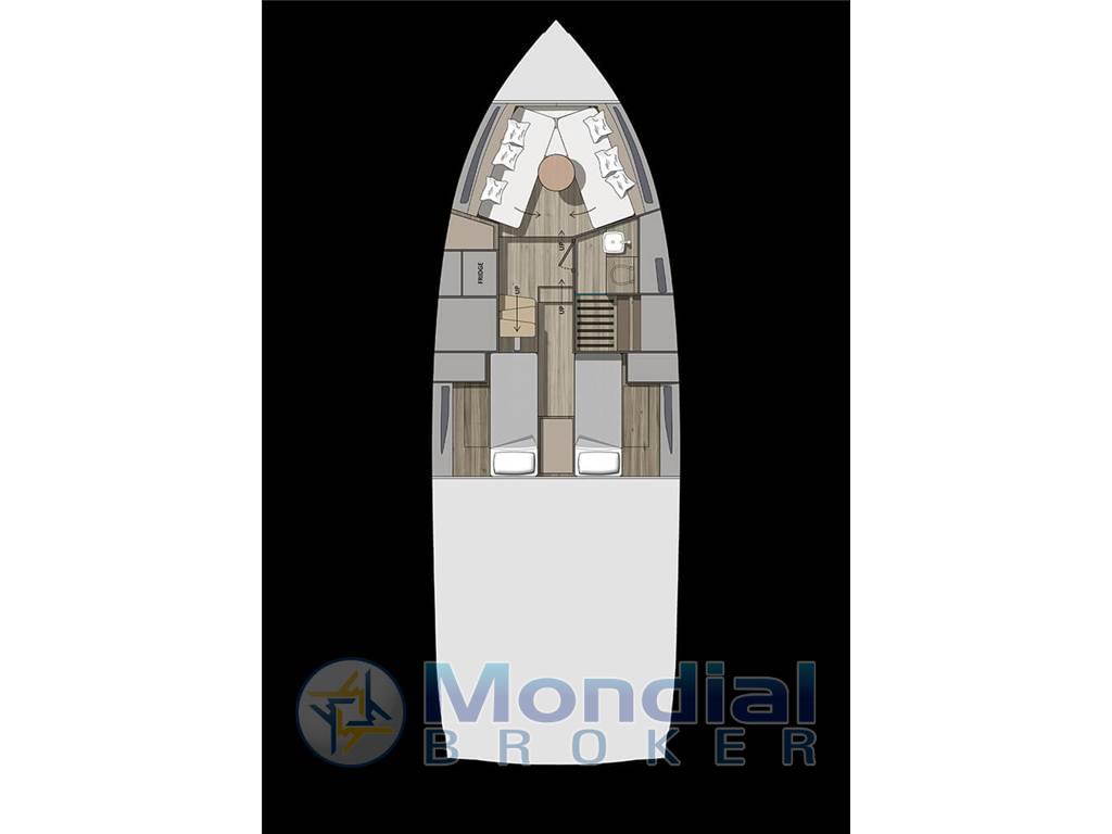 Altoparlanti (Impianto Fusion Lounge con 16 altoparlanti), Boiler, Clima reversibile, Cuscineria di poppa, Cuscineria di prua, Cuscineria Pozzetto, Frigorifero esterno, Frigorifero interno, ICE Maker, Impianto acque nere, Microonde, Pavimento interno in legno, Piastra in vetroceramica, Prese interne 12v, Prese interne 220v, Serbatoio Acque Nere, Stereo, Telo copriconsolle, Telo coprisedile, WC marino elettrico