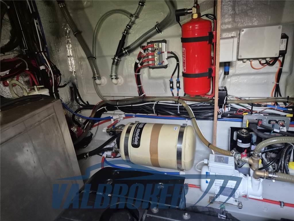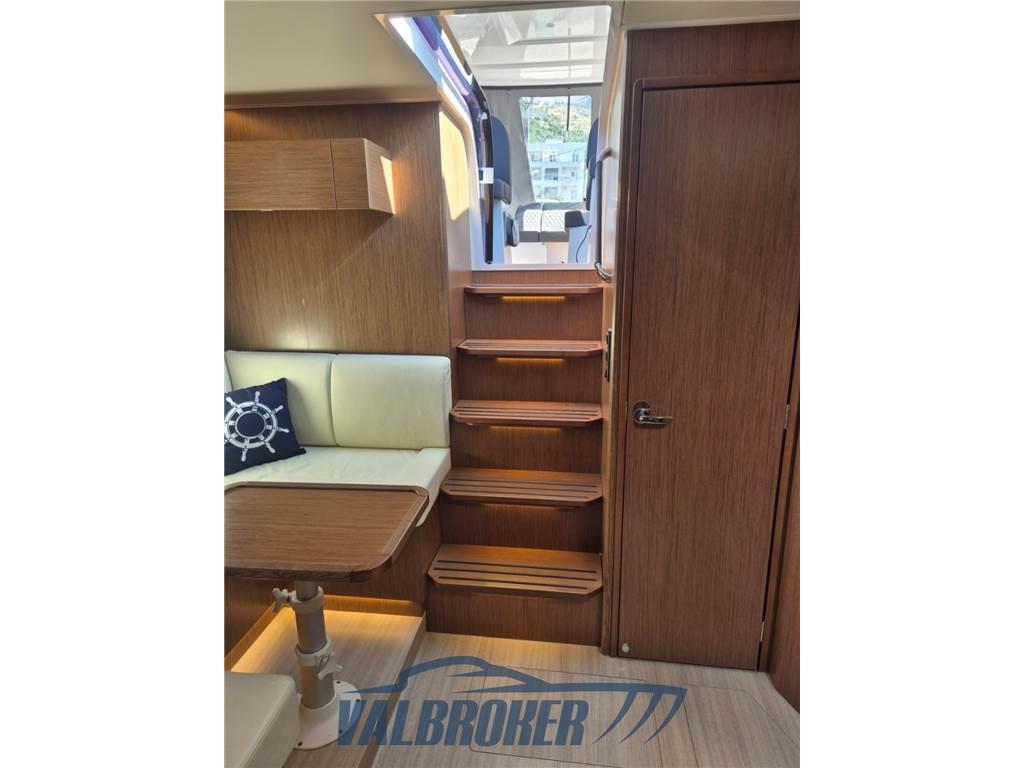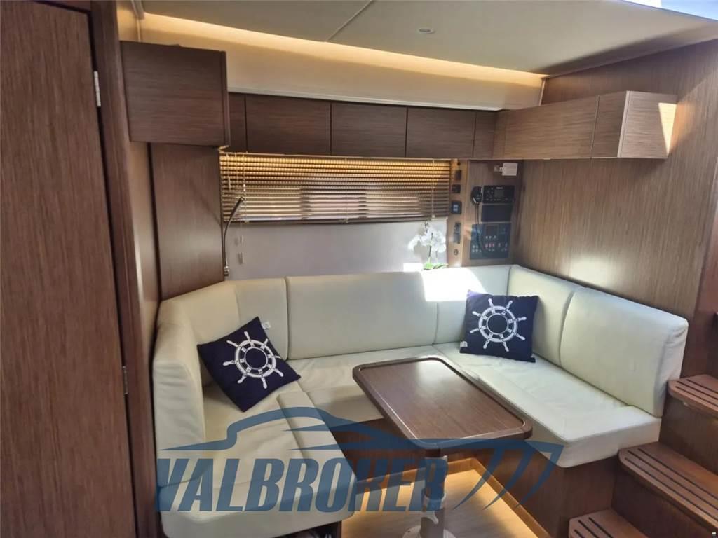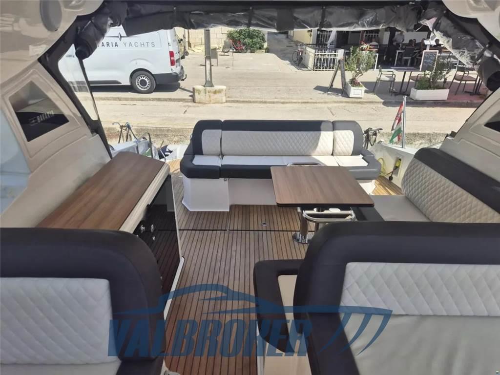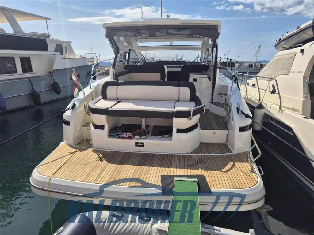 Con un confortevole pozzetto e un ampio prendisole trasformabile in un'area lounge con tavolo frontemare, insieme alla spaziosa plancetta maggiorata, è l'imbarcazione a motore ideale per giornate piacevoli in mare con famiglia e amici. Hard top apribile, piattaforma maggiorata in teak, radar, Joystick Volvo Penta, doppio display Simrad, computer di bordo Volvo, elica di prua, aria condizionata caldo/freddo. Sottocoperta ospita due cabine: cabina armatoriale a poppa a tutto baglio e una cabina VIP a prua. Motori 2x Volvo Penta D6 380 common rail turbodiesel con poche ore di moto.