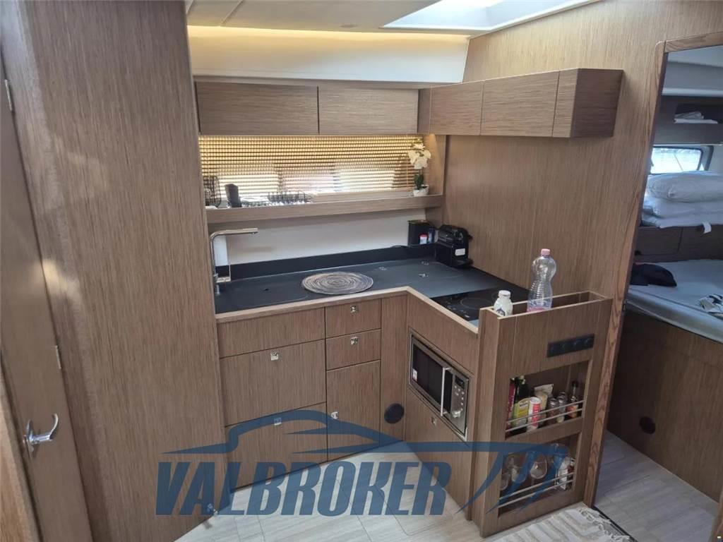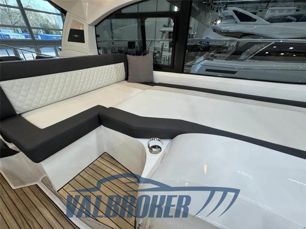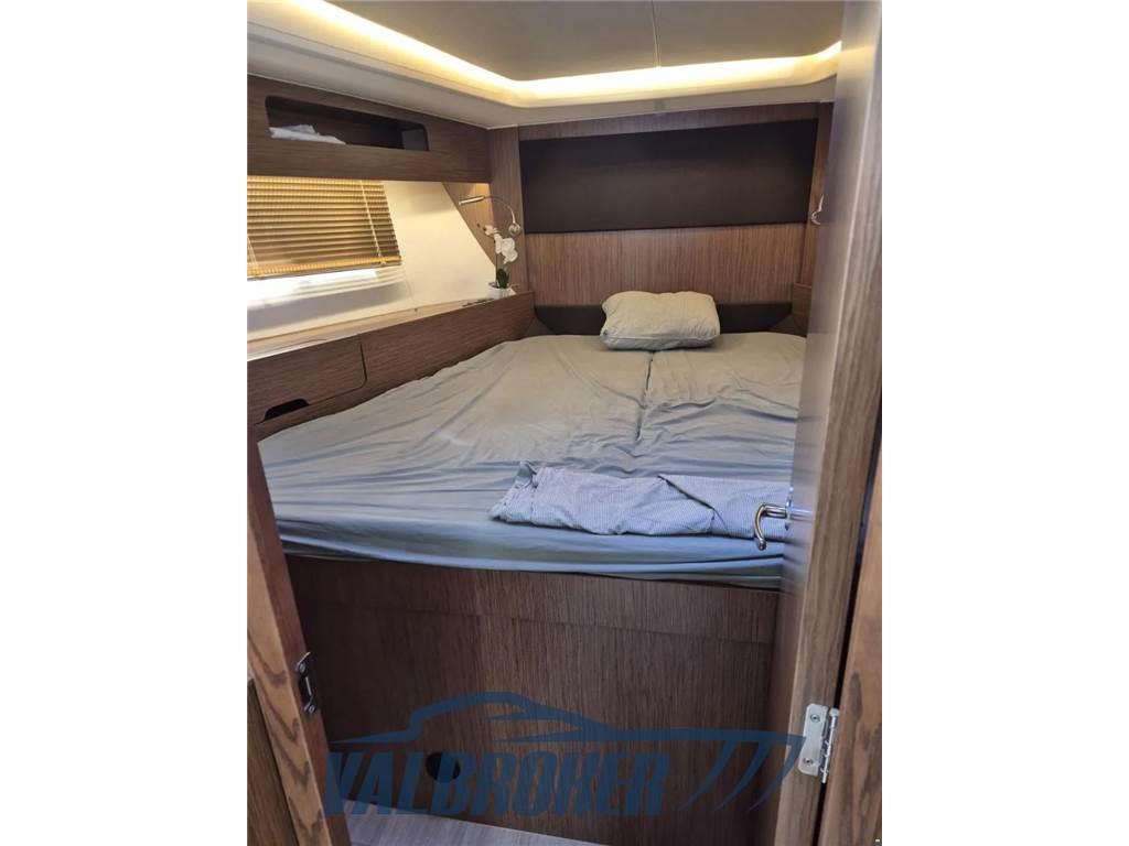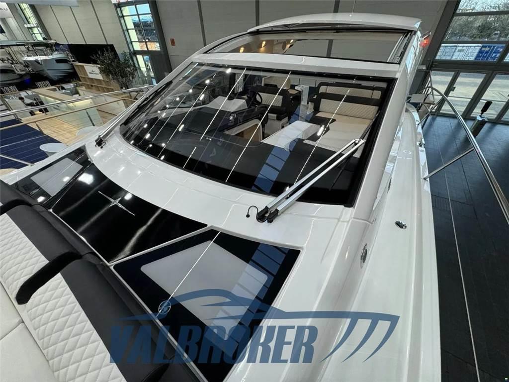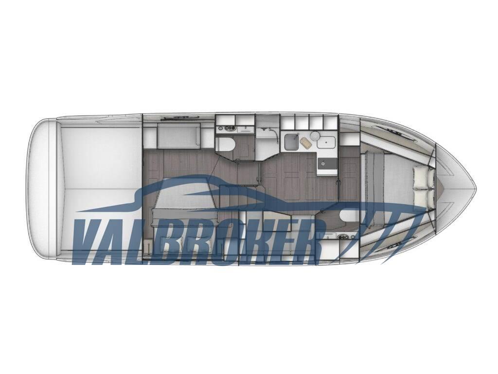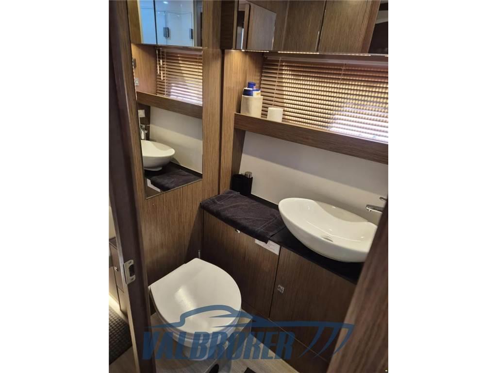 Con un confortevole pozzetto e un ampio prendisole trasformabile in un'area lounge con tavolo frontemare, insieme alla spaziosa plancetta maggiorata, è l'imbarcazione a motore ideale per giornate piacevoli in mare con famiglia e amici. Hard top apribile, piattaforma maggiorata in teak, radar, Joystick Volvo Penta, doppio display Simrad, computer di bordo Volvo, elica di prua, aria condizionata caldo/freddo. Sottocoperta ospita due cabine: cabina armatoriale a poppa a tutto baglio e una cabina VIP a prua. Motori 2x Volvo Penta D6 380 common rail turbodiesel con poche ore di moto.