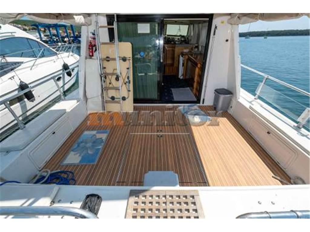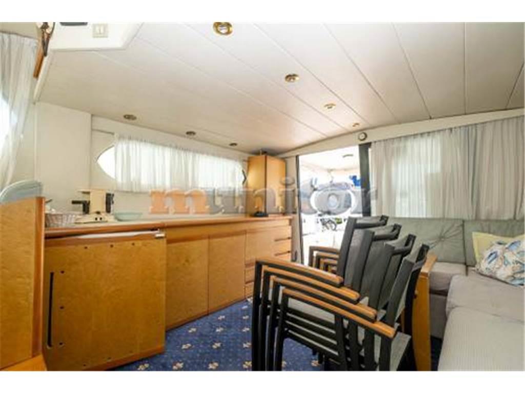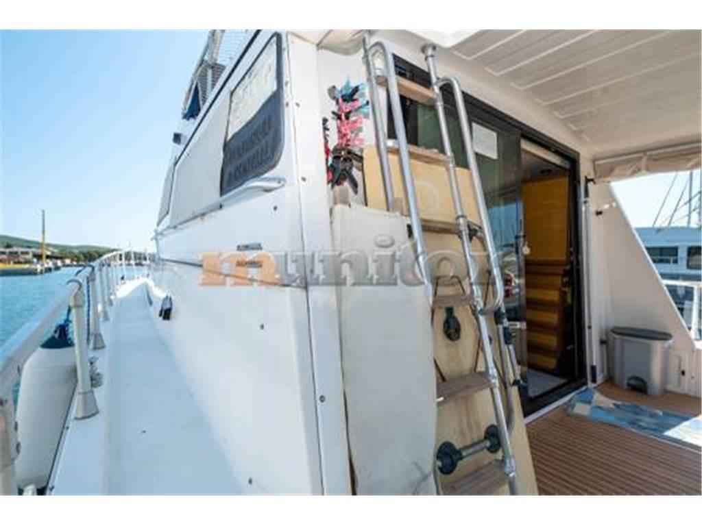 Impianto audio, Pilota automatico, Piattaforma da bagno, Caricabatterie, Elica di prua, Doccia in pozzetto, Tender, Ecoscandaglio, Salpa ancora, Bimini FLYBRIDGE, Generatore, Plotter GPS, Serbatoio acque grigie, Impianto acqua calda, Motore fuoribordo, Scaletta da bagno