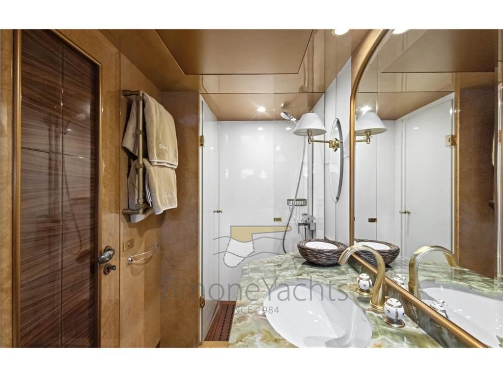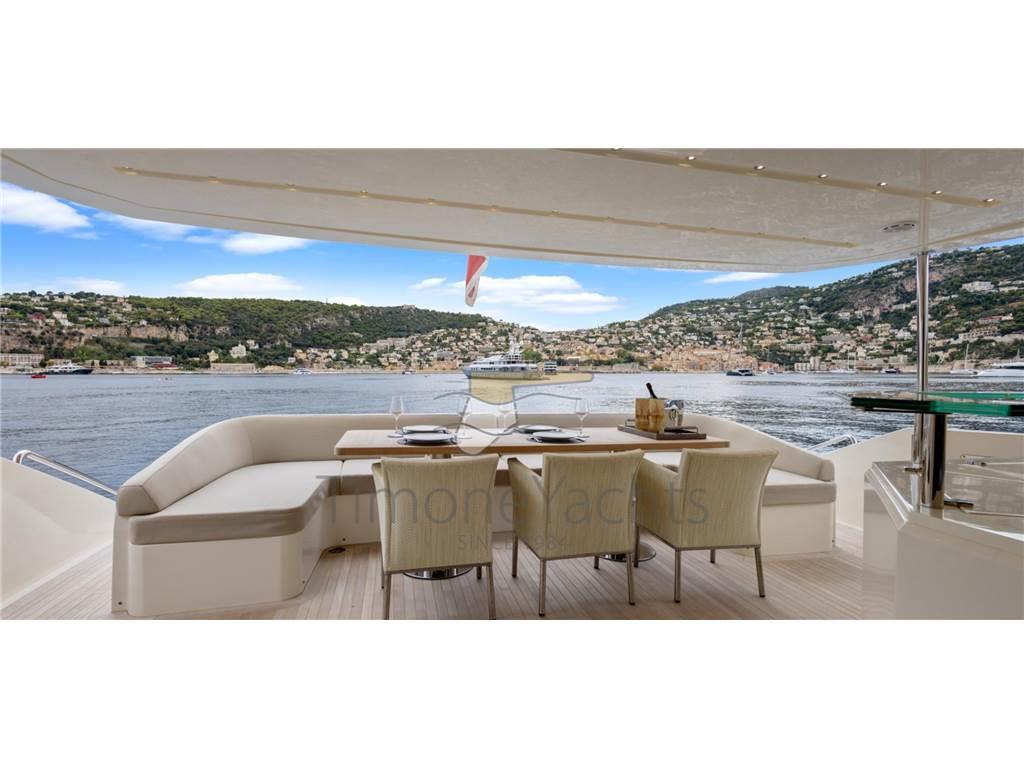 Allarme fumo/gas, Allarme motore, Allarme sentina, Alternatore, 2 Ancora, Auto-Trim, Camminamenti laterali in teak, Cavo corrente di banchina, Doppia timoneria, Elica di poppa - stern thruster, Elica di prua - bow thruster, Flap idraulici, Garage per tender, Gruette per tender, Hard top, Lavandino nel Pozzetto, Luci subacquee, Passerella, Porta ingresso, Pozzetto Teak, Presa 220V banchina, Presa acqua banchina, Stabilizzatori (Humphree eletric fins), Tavolo pozzetto, Tender (Williams SportJet 325 110 HP), Tromba, Winch tonneggio di poppa, Winch tonneggio di prua.