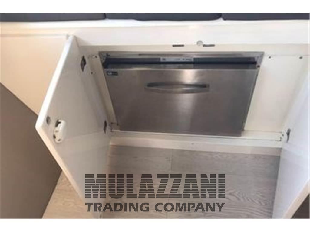 Allarme motore, Ancora, Angolo barra, Antenna radar, Autoclave, Batterie, Bussola, Caricabatterie, Colorazione speciale, Display, Doccia esterna, Elica di poppa - stern thruster, Elica di prua - bow thruster, Faro orientabile, Flap idraulici, GPS, Hard top, Indicatori Flaps, Log, Luci di cortesia, Luci subacquee, Passerella, Piattaforma, Pilota automatico, Plotter, Plotter con antenna GPS, Pompa di sentina automatica, Pompa di sentina elettrica, Porta ingresso, Pozzetto Teak, Presa 220V banchina, Presa acqua banchina, Radar, Raddrizzatore, Radio VHF, Salpa Ancore Elettrico, Scaletta da bagno, Tavolo pozzetto, Tromba