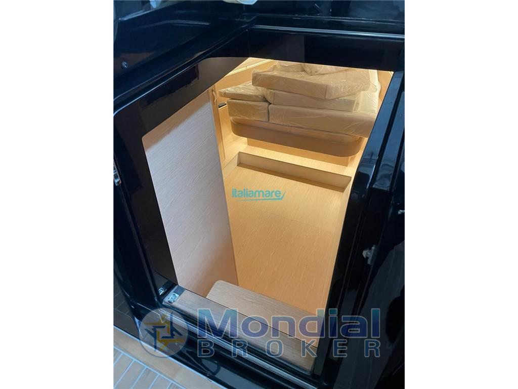 Accessori principali: Aria condizionata - GPS - Strumentazione GARMIN - Teak in pozzetto - Camminamenti laterali in teak - Tavolo pozzetto in teak - Piattaforma idraulica in teak - Pilota automatico - T-top - Stereo