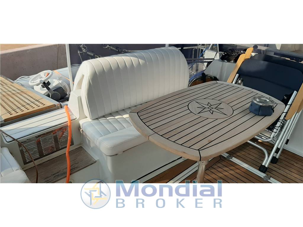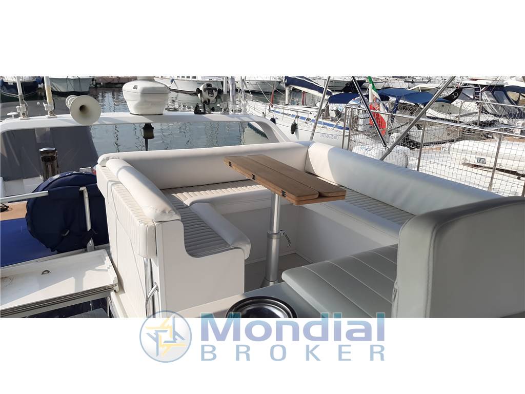Tutta la cuscineria esterna, tendalino fly, copertura vetri esterni, tendalino pozzetto, Cuscinerie interne, rivestimenti pareti, tavolo interno, paracolpi bordo plancia di poppa, tendere con motore fuoribordo.