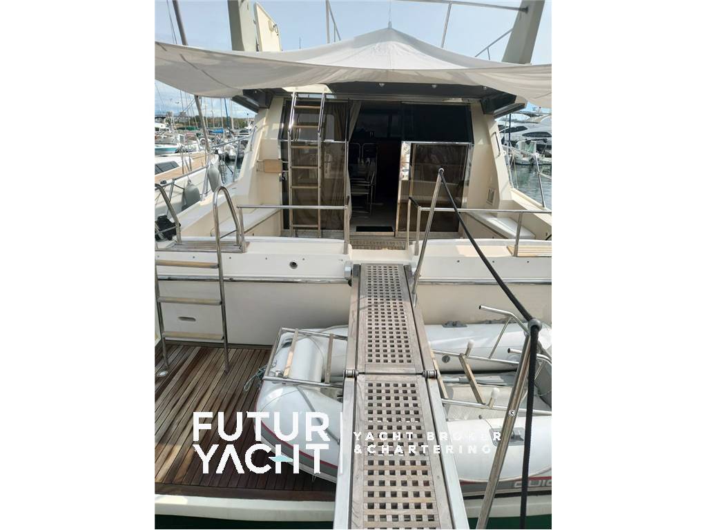 Allarme motore, Ancora, Autoclave, Batterie, Caricabatterie, Doccia esterna, Elica di prua - bow thruster, Flap idraulici, Passerella, Piattaforma, Pompa di sentina elettrica, Porta ingresso, Pozzetto Teak, Presa 220V banchina, Presa acqua banchina, Rollbar, Salpa Ancore Elettrico, Scaletta da bagno, Supporto motore fuoribordo, Tromba.